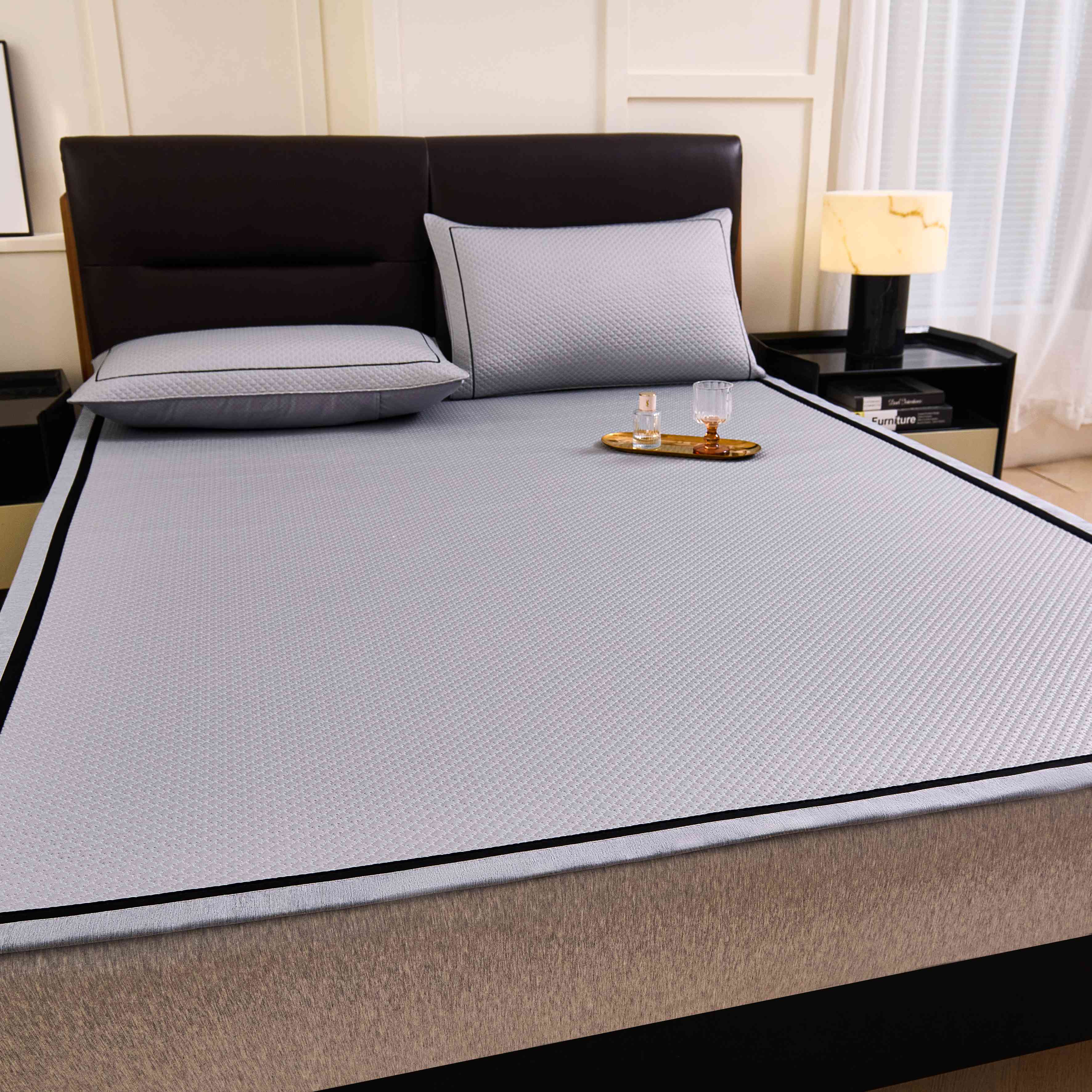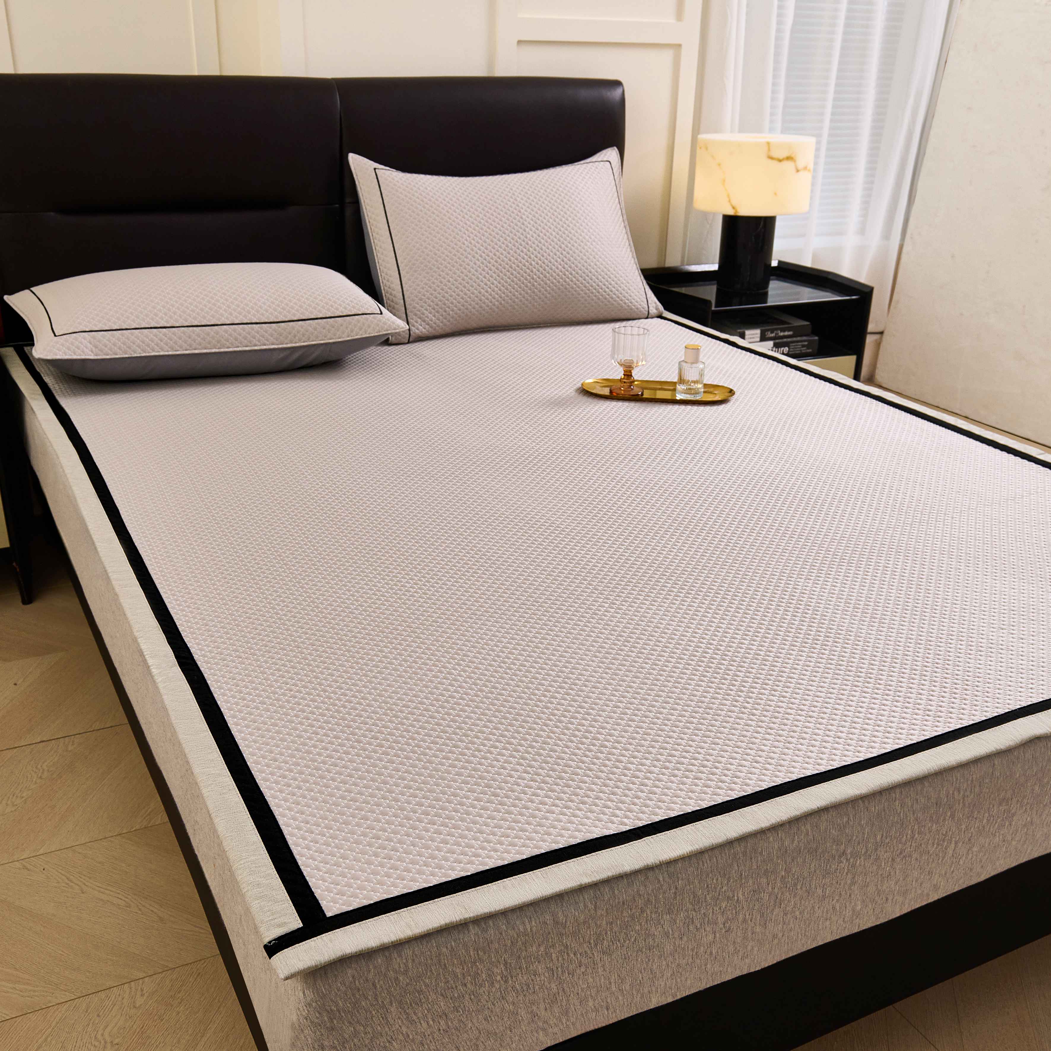(总)梵克保罗 2026春夏新款凉感豆豆席极简织带平席款凉席极简贴边款,极简粉,极简灰,极简咖,极简蓝,极简绿