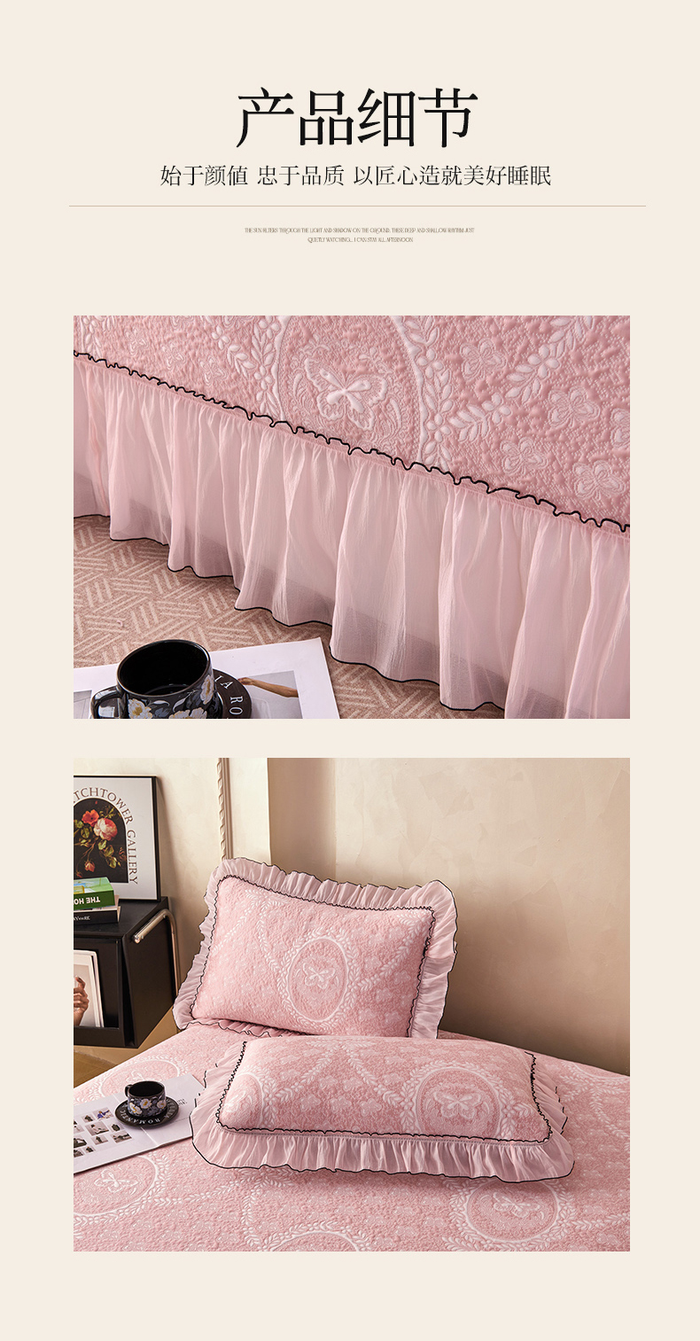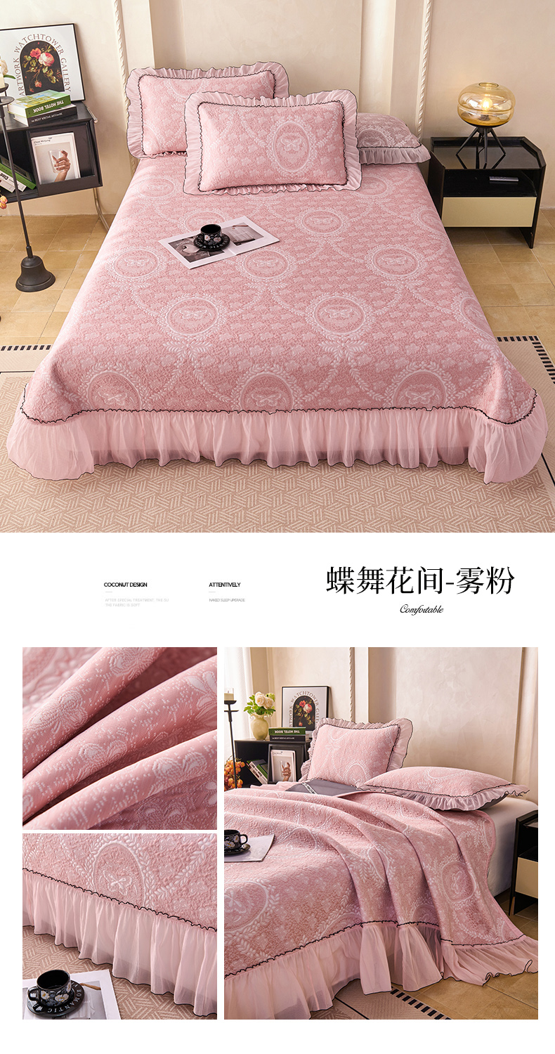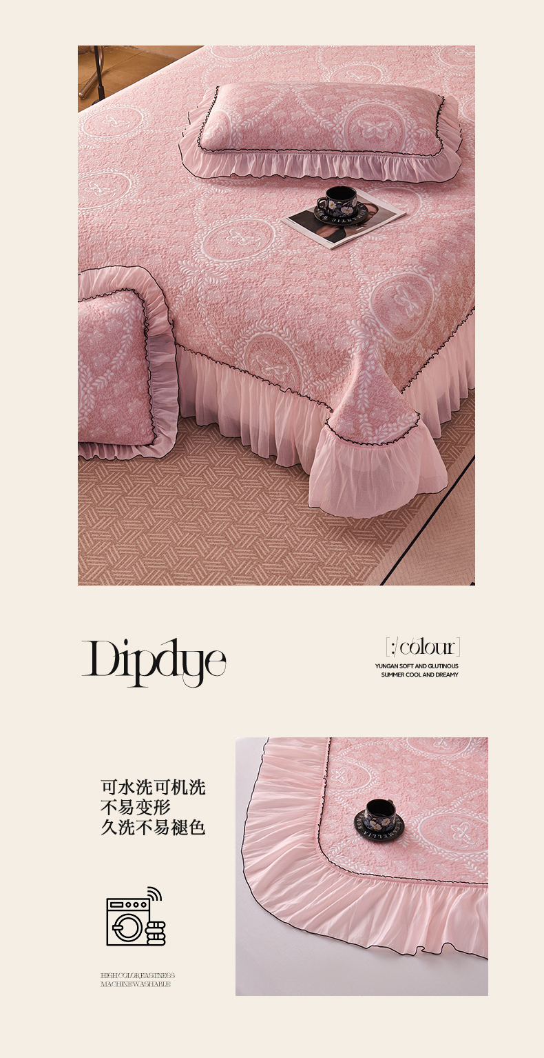 (总)梵克保罗 2026春夏新款PE乙纶凉感因子冰豆豆韩系蕾丝提花床裙款凉席三件套-韩系系列,组合图仅供展示不可下单,韩系-冰川灰,韩系-冰川蓝,韩系-清水绿,韩系-仙女粉,韩系-玉石白