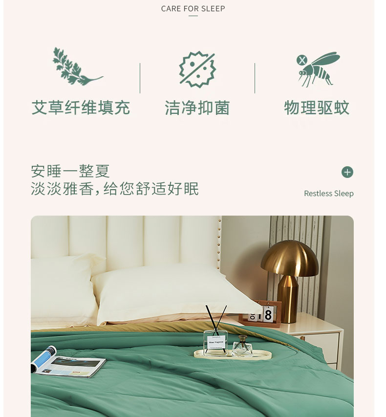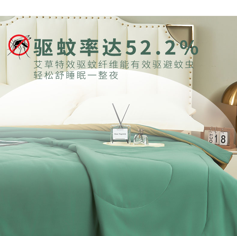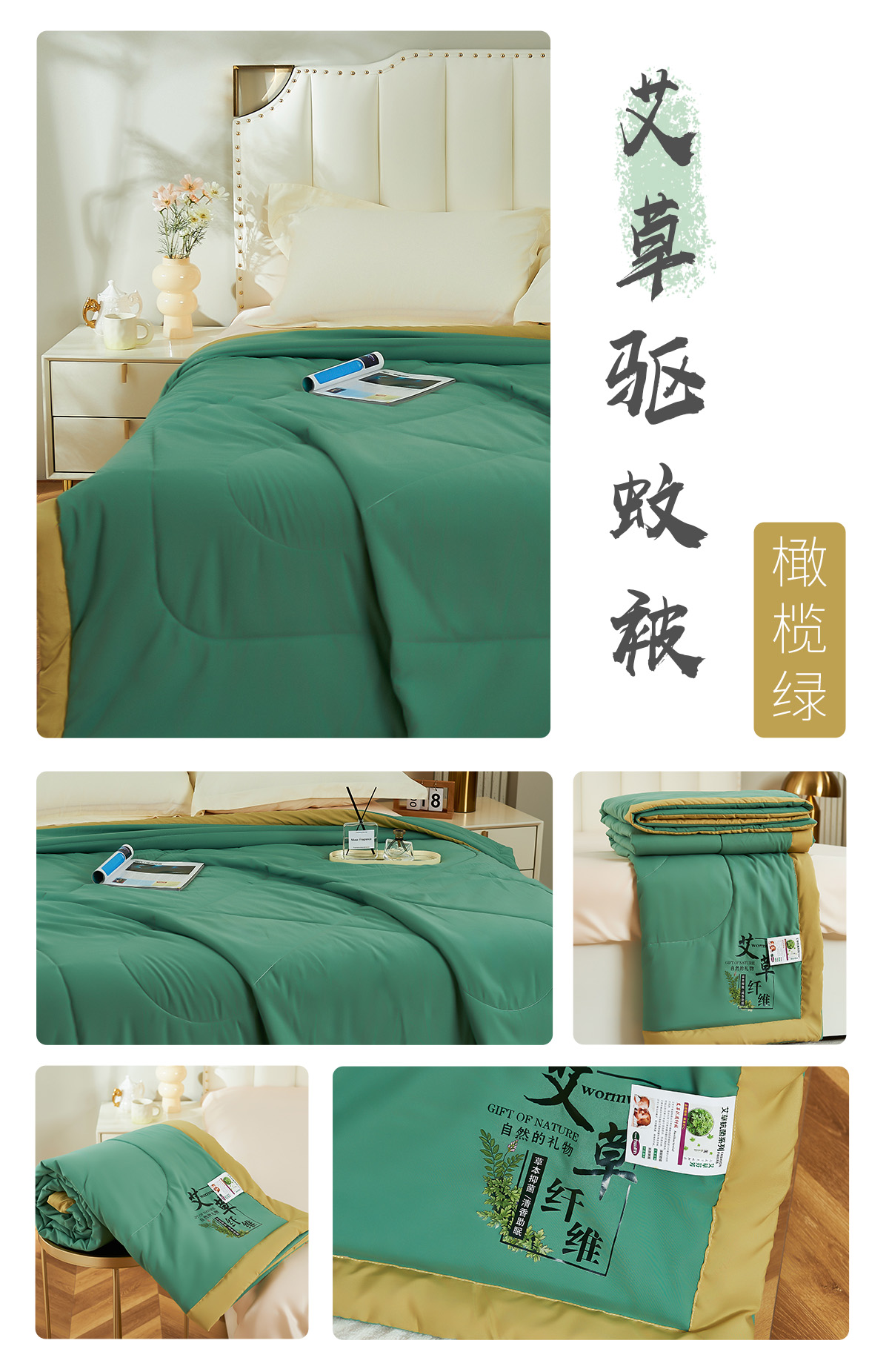 (总)憨豆家纺 2026新款艾草区驱蚊夏被空调被夏凉被,橄榄绿,高级灰,和田黄,火欧橘,暖心粉,天际蓝