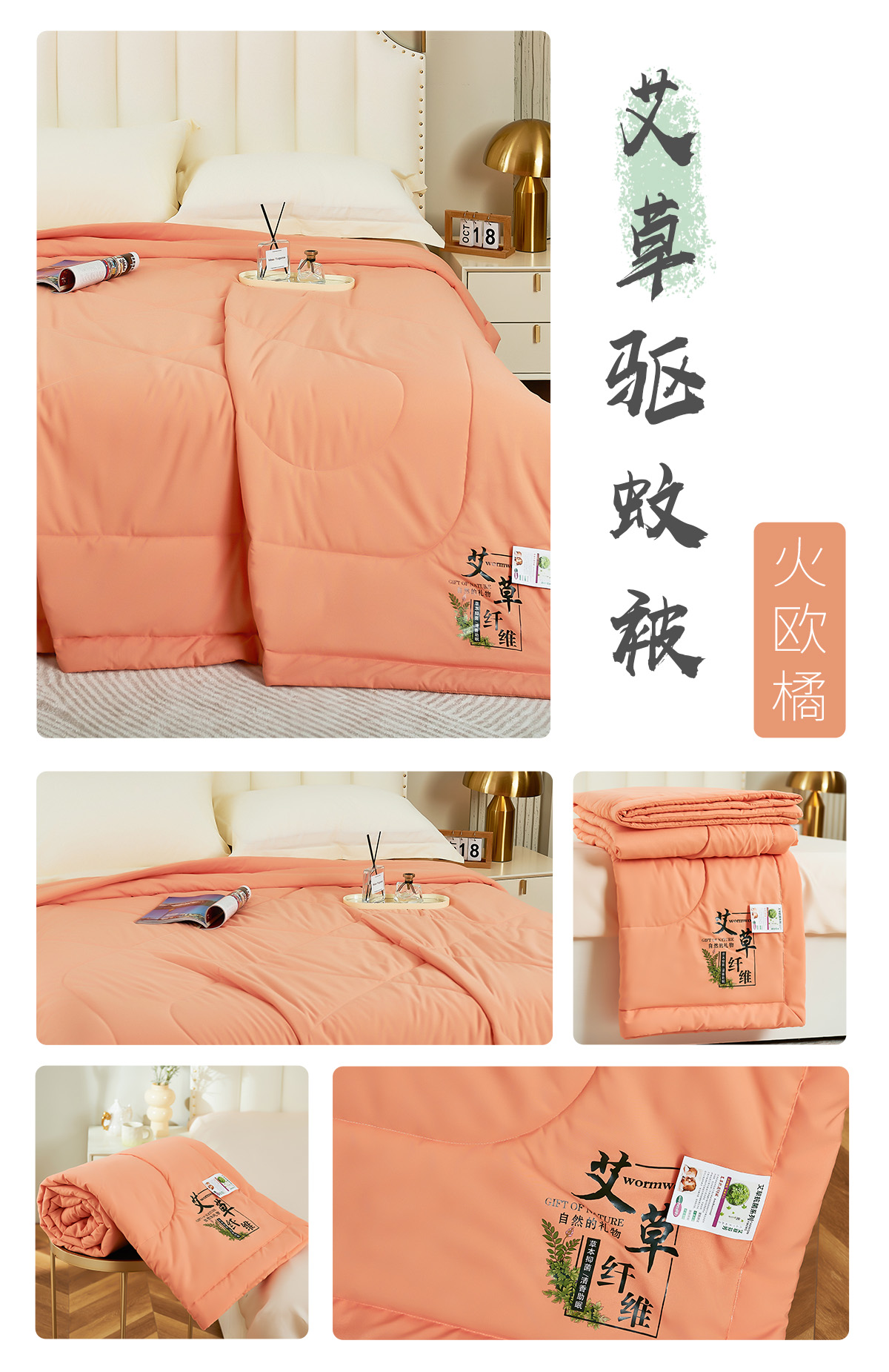 商品名称:憨豆家纺 2026新款艾草夏被空调被薄被子艾草驱蚊夏凉被礼品被子 火欧橘