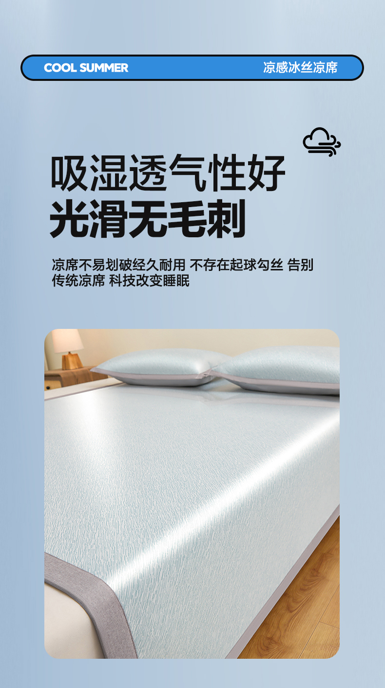 商品名称:航途席业 2026新款素锦色织纯冰丝席凉席席子 雾蓝