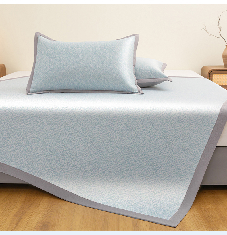 航途席业 2026新款素锦色织纯冰丝席凉席席子 雾蓝