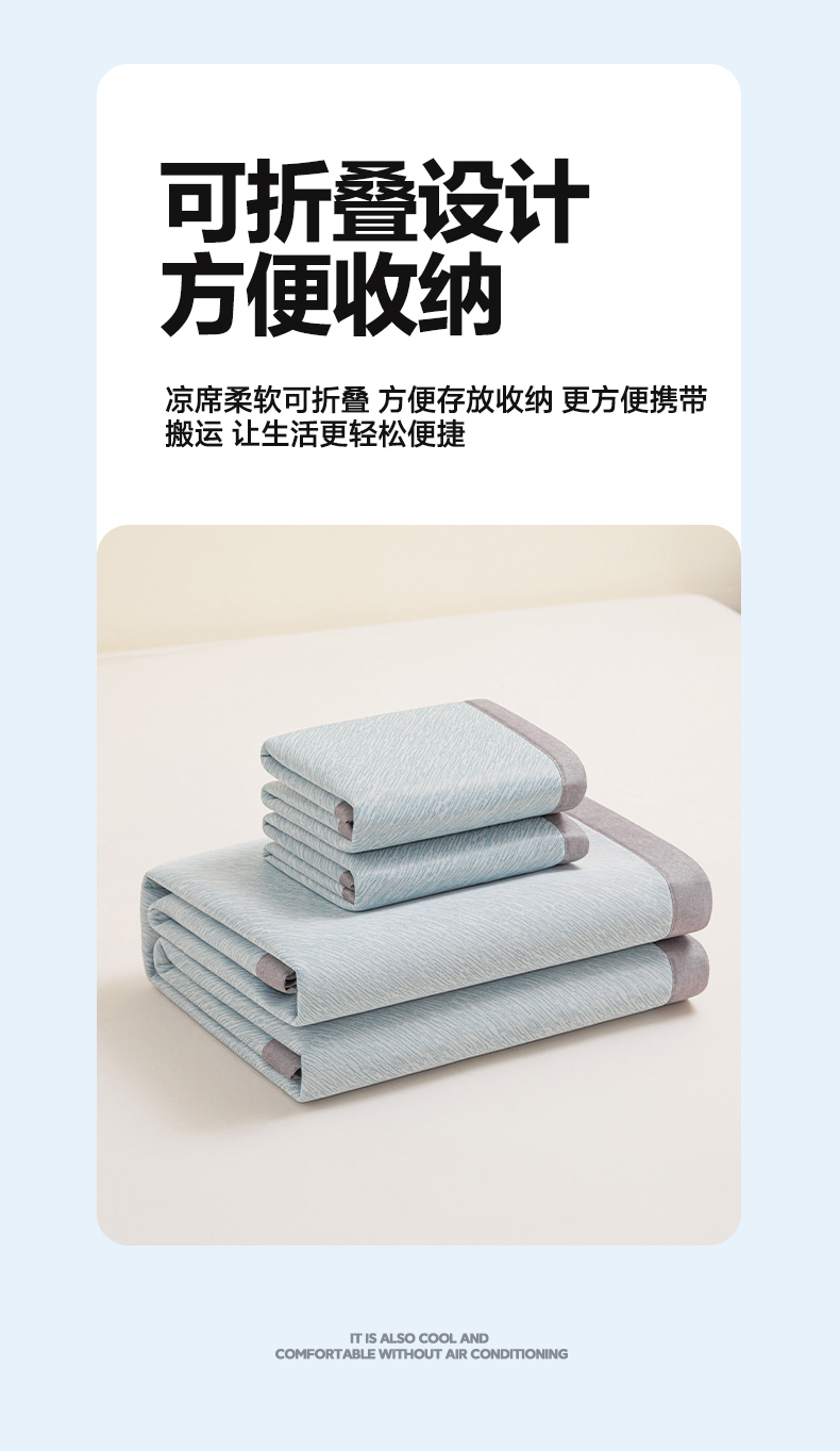 (总)航途席业 2026新款清澜肌理粗冰丝凉席席子-可机洗,粉,灰,蓝紫,绿