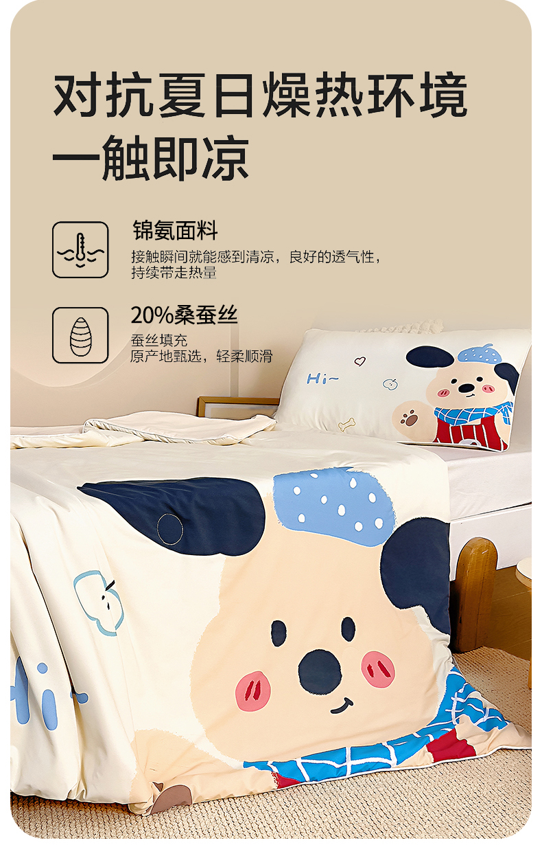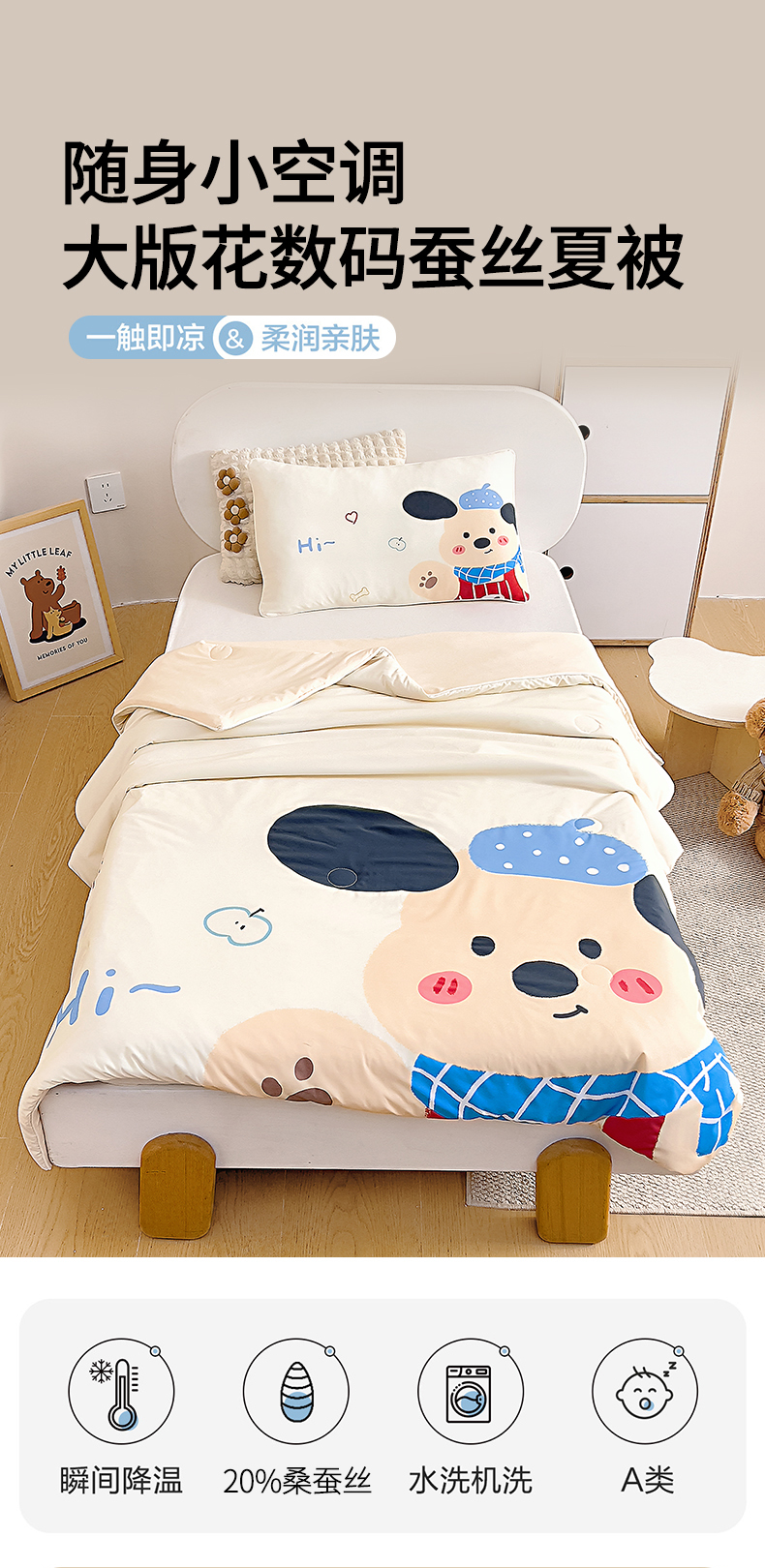 商品名称:御棉坊2026新款A类锦氨数码印花大版蚕丝儿童夏凉被幼儿园午睡被宝宝夏季空调被薄被子 乖乖狗