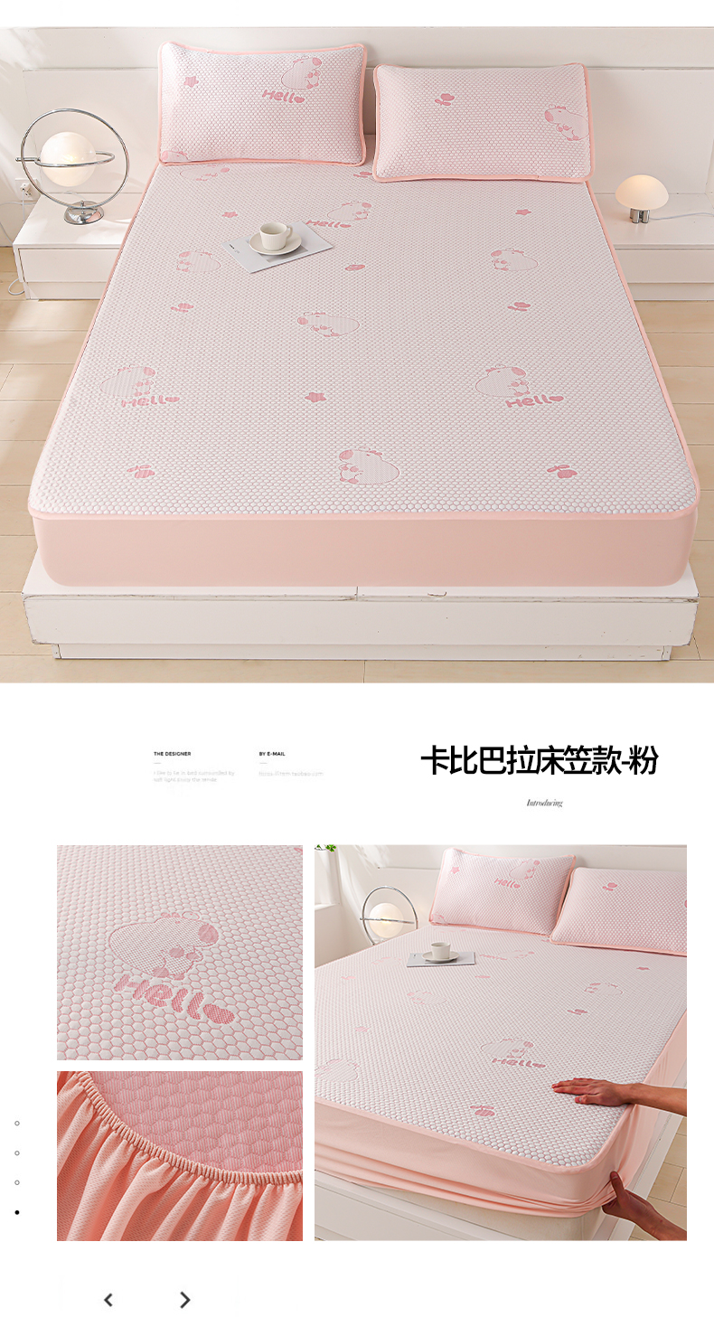 • 91家纺网 家纺一手货源 找家纺 席匠 2026新款冰豆豆床裙卡通款凉席席子凉席三件套 卡比巴拉床笠款-粉