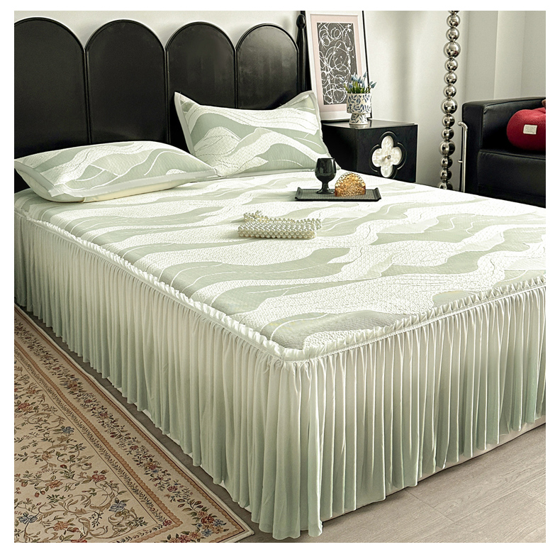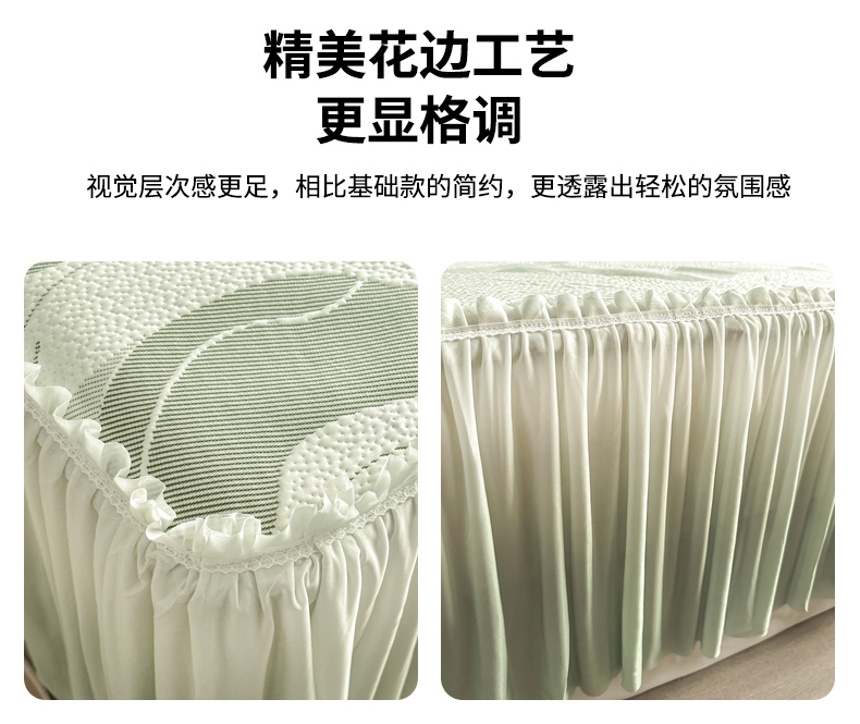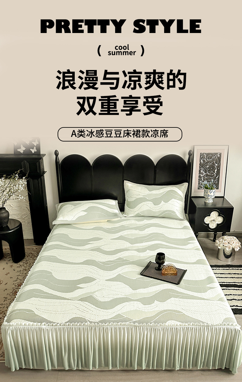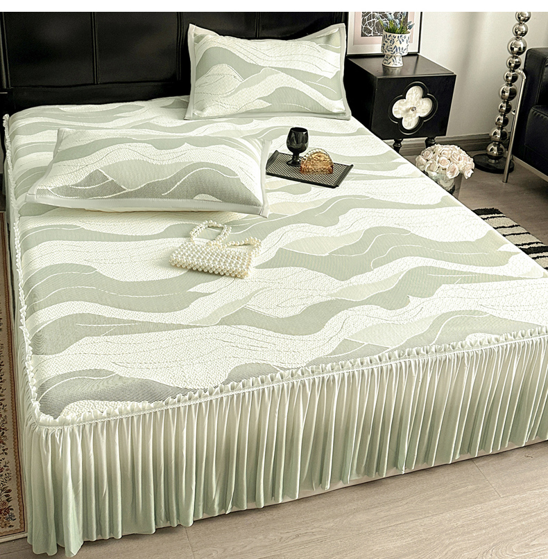 当前位置: 91家纺网 > 商品网购 > 床上用品 > 凉席 > 其他凉席 > 富馨莱 2026春夏新款PE乙纶高克重冰豆豆席凉感凉席单件床裙三件套支持一件定做尺寸 波纹-绿