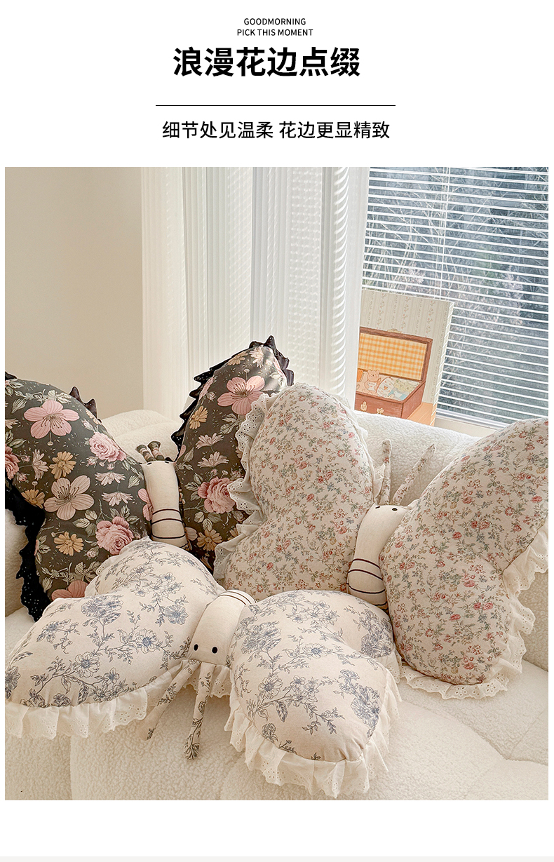 商品名称:蔻眠 花边款棉麻刺绣蝴蝶抱枕靠枕异型枕芯 青瓷花语