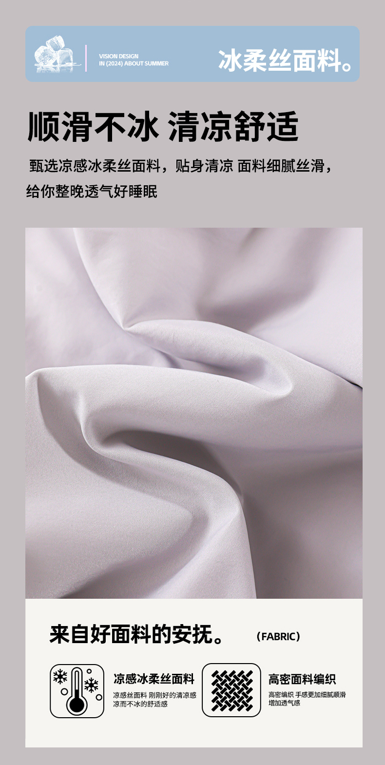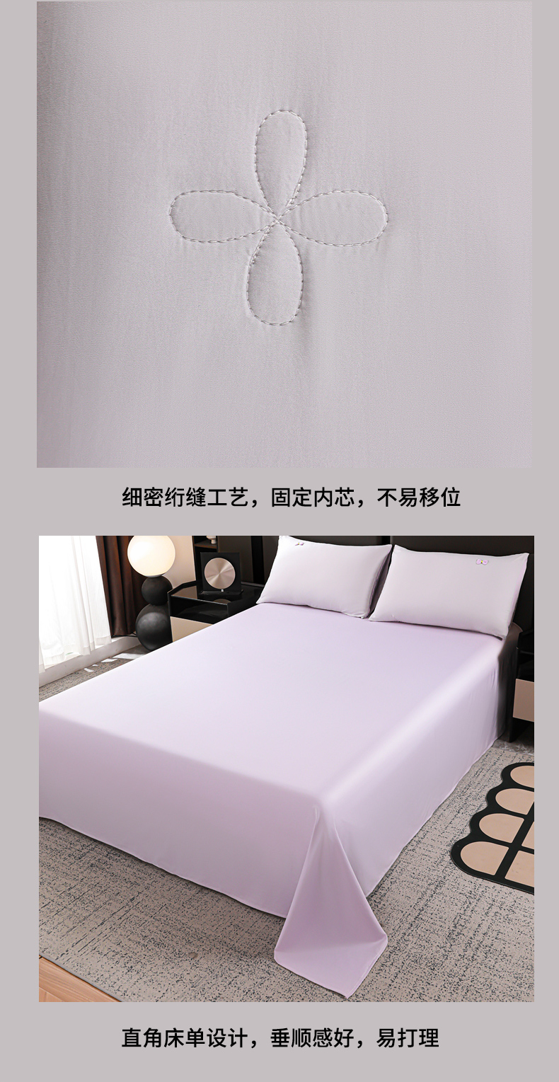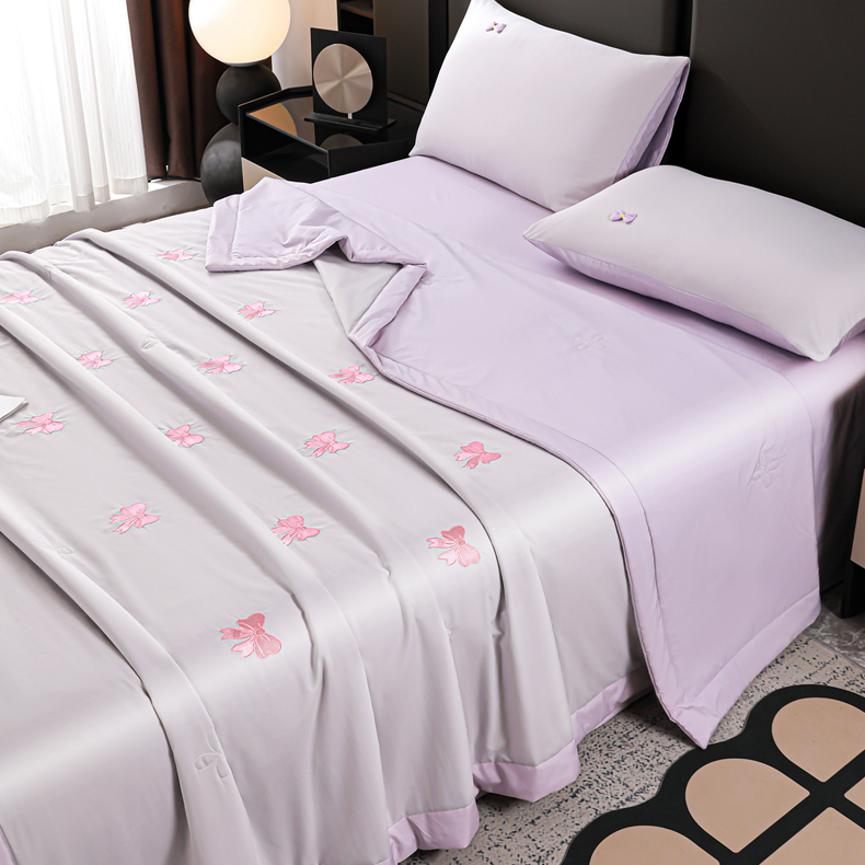 当前位置: 91家纺网 > 商品网购 > 床品套件 > 四件套 > 夏被四件套 > 佳鸿家纺 2026新款凉感冰柔丝刺绣手包边夏凉被夏被四件套-场景二 灰紫蝴蝶结