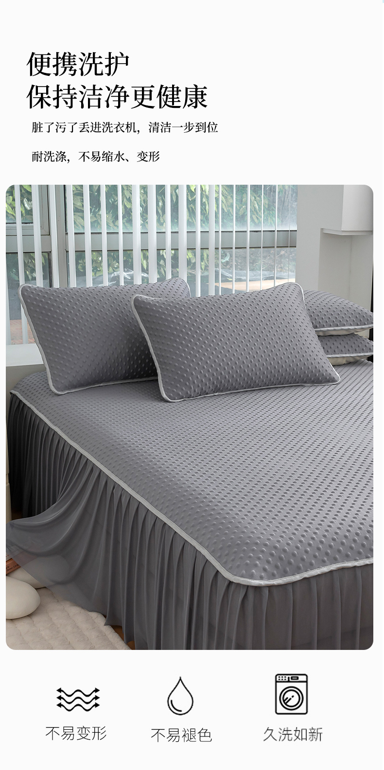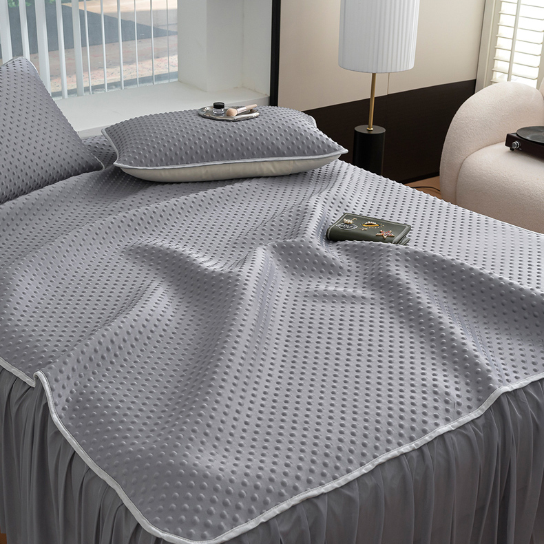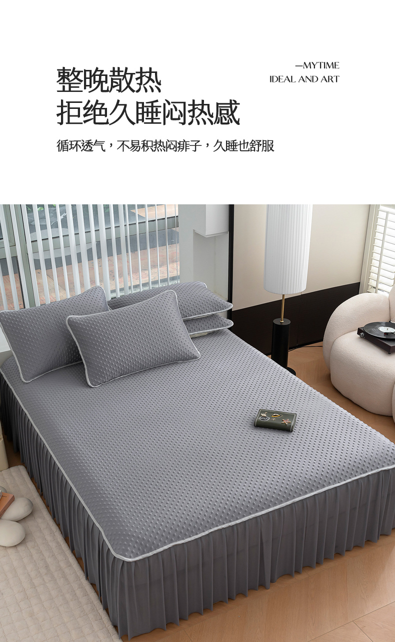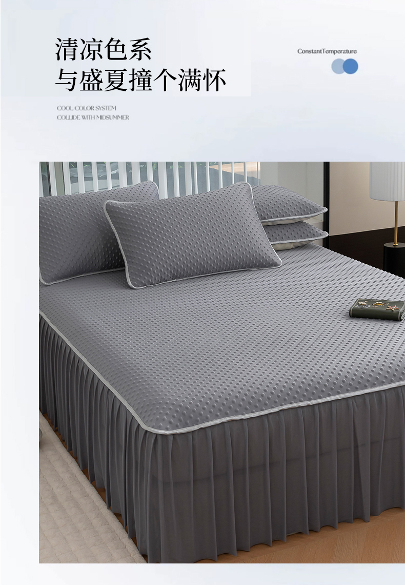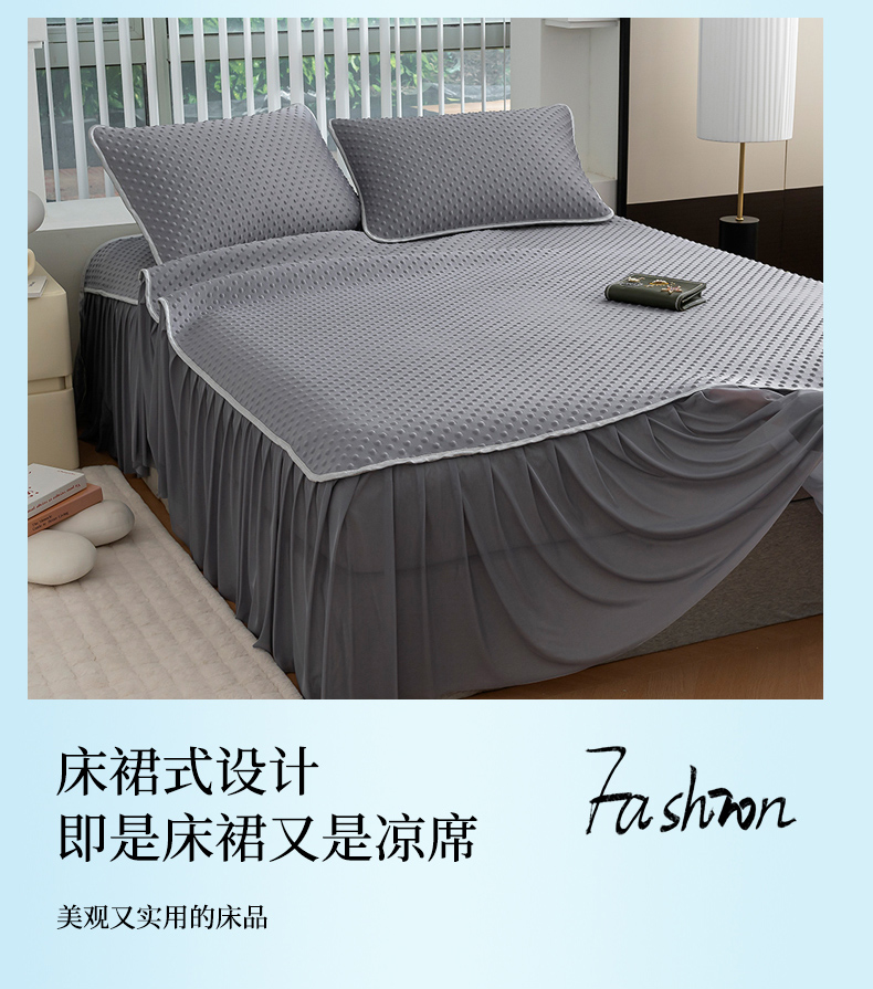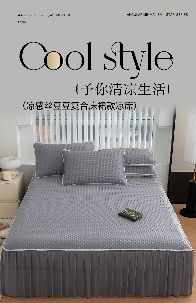商品名称:默忆 2026新款3DA类直播网红热款凉感丝冰豆豆三明治复合床裙款凉席三件套 贵族灰