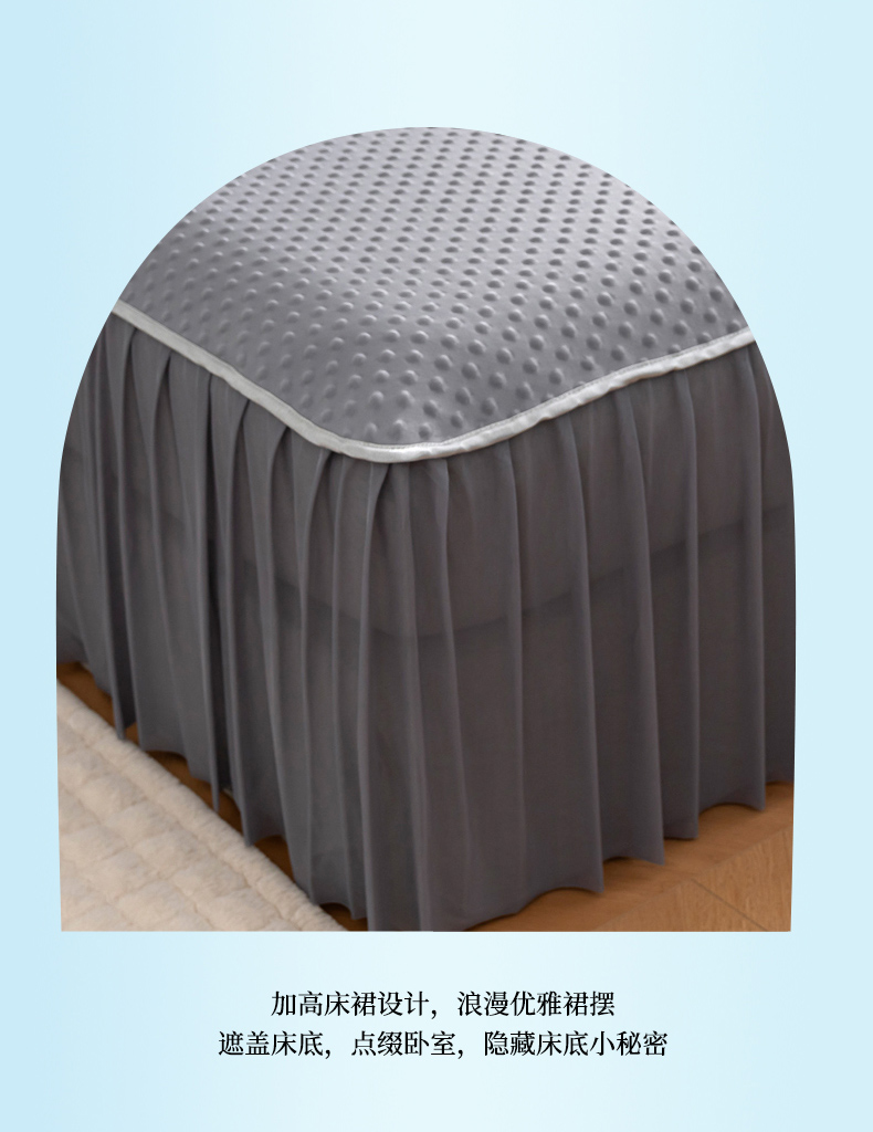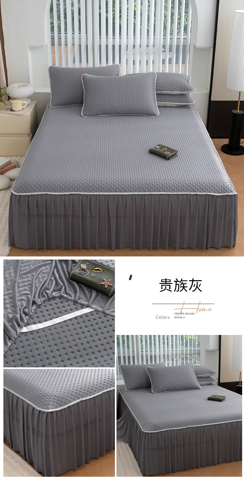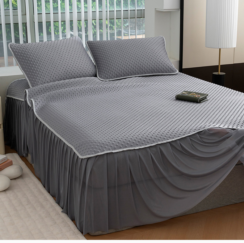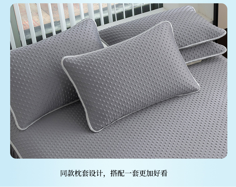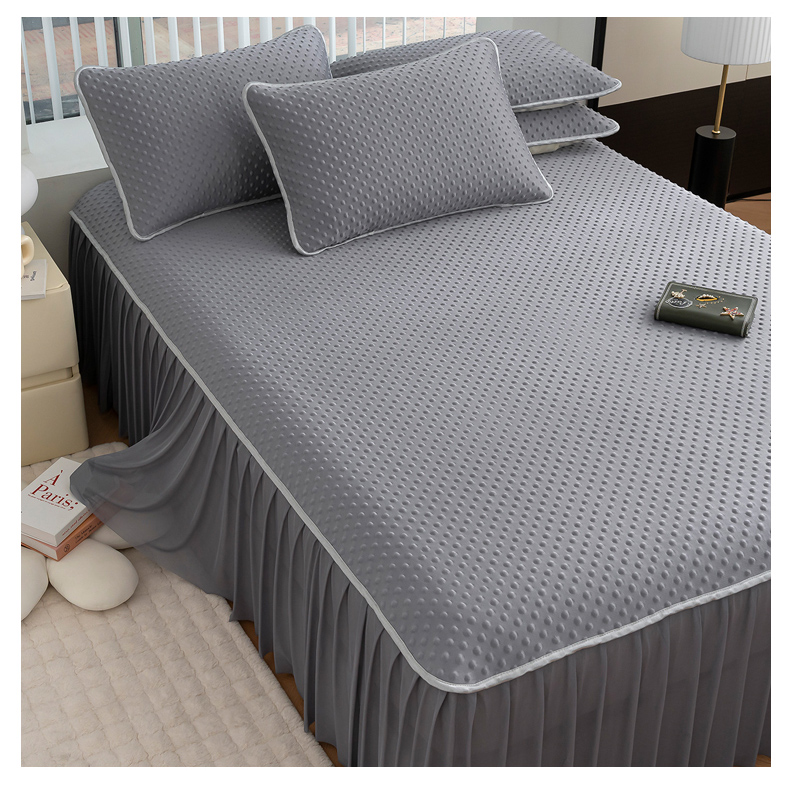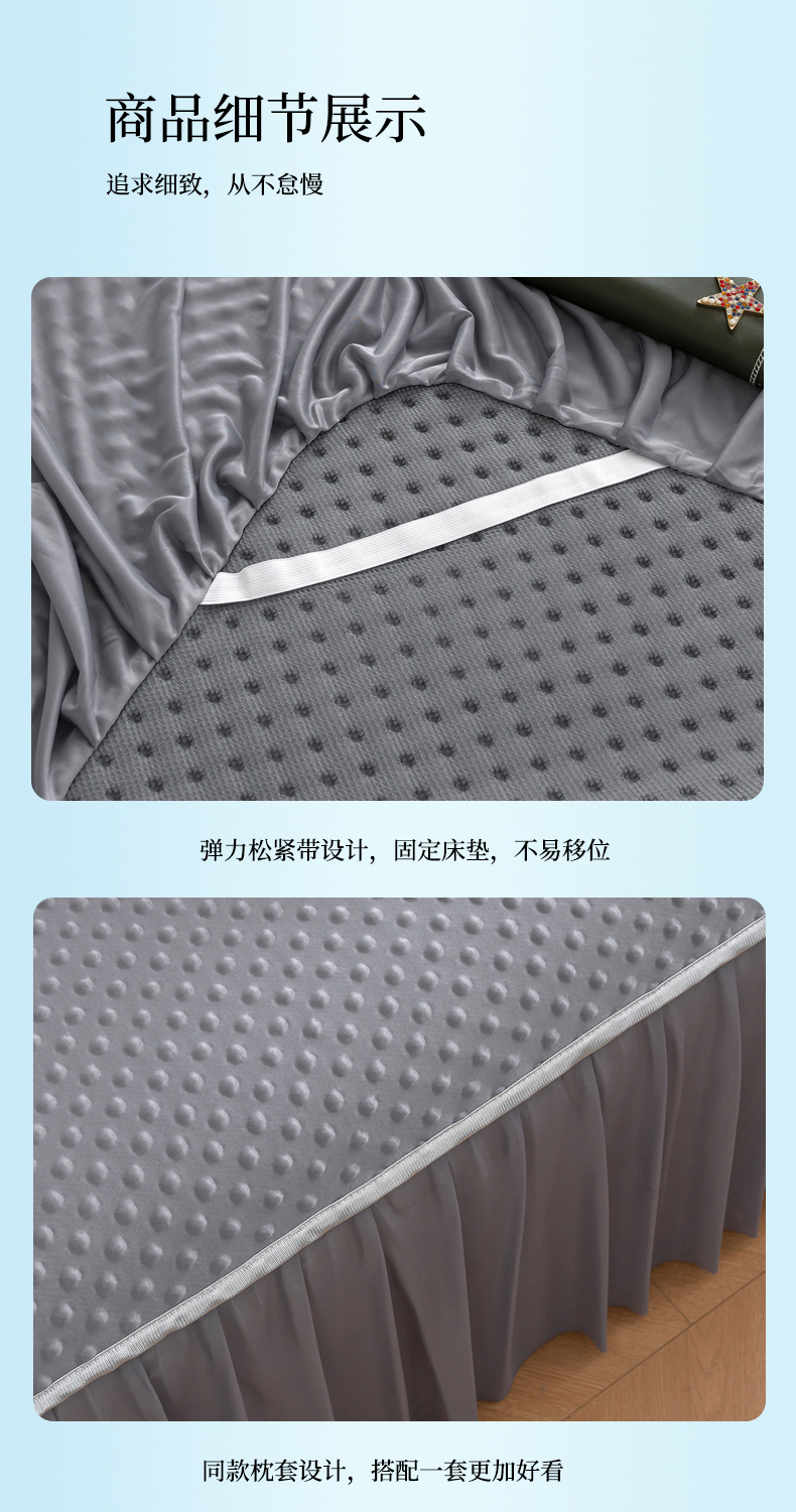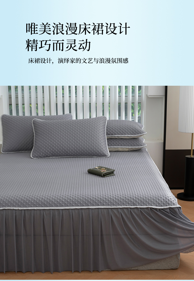 商品名称:默忆 2026新款3DA类直播网红热款凉感丝冰豆豆三明治复合床裙款凉席三件套 贵族灰