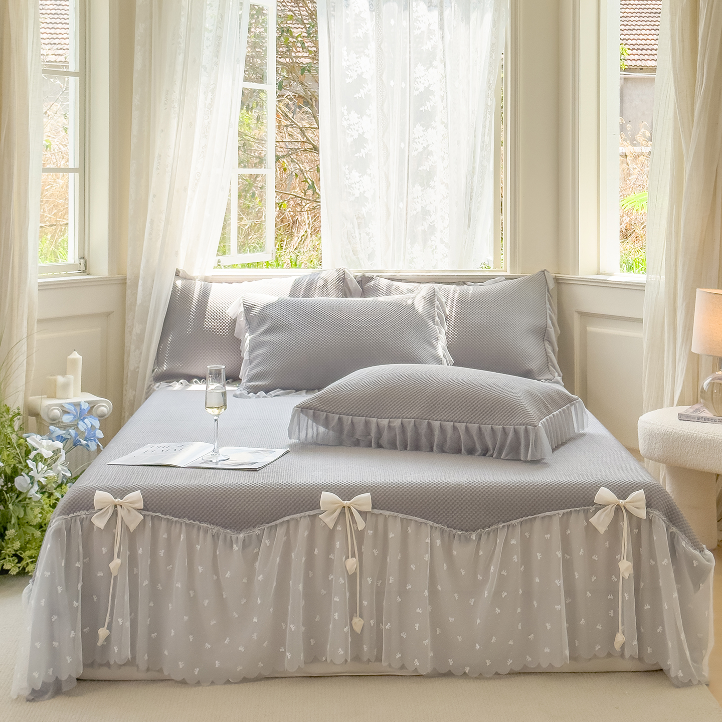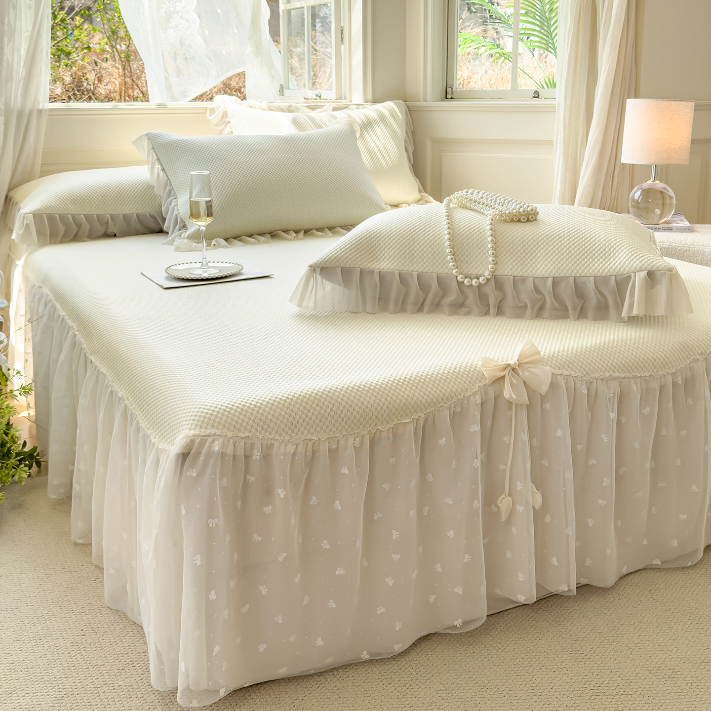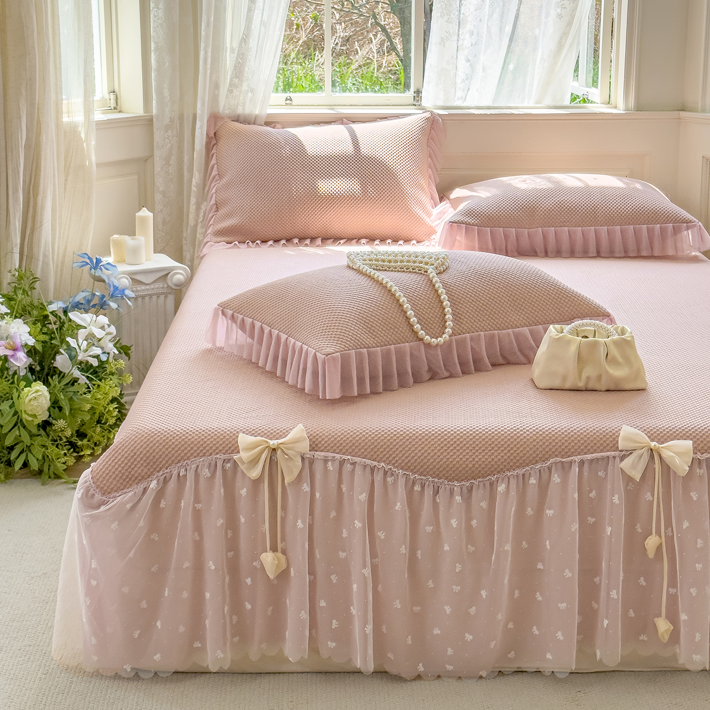 (总)恋尚羽家纺 2026新款高分子PE凉泡泡大床裙凉感席波浪冰豆豆凉席席子三件套-蝴蝶结系列,蝴蝶结-粉色,蝴蝶结-灰色,蝴蝶结-咖色,蝴蝶结-蓝色,蝴蝶结-绿色,蝴蝶结-米白色,蝴蝶结-紫色