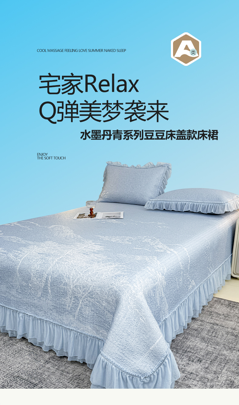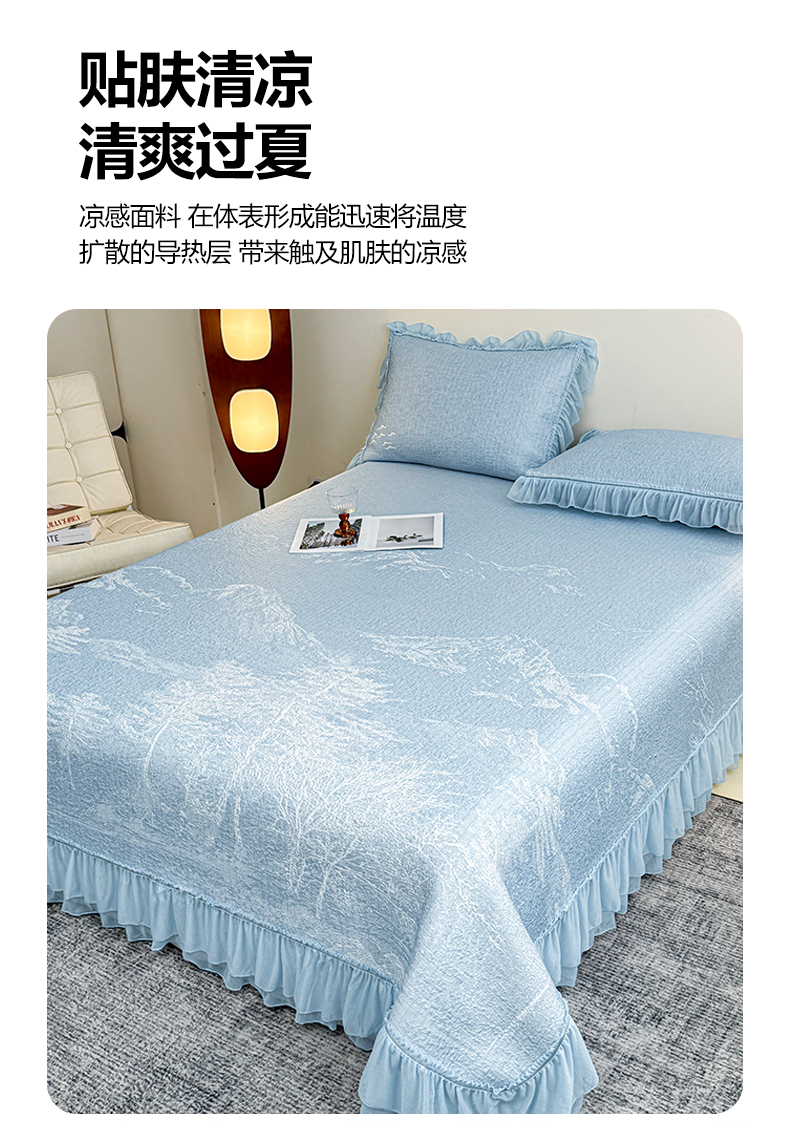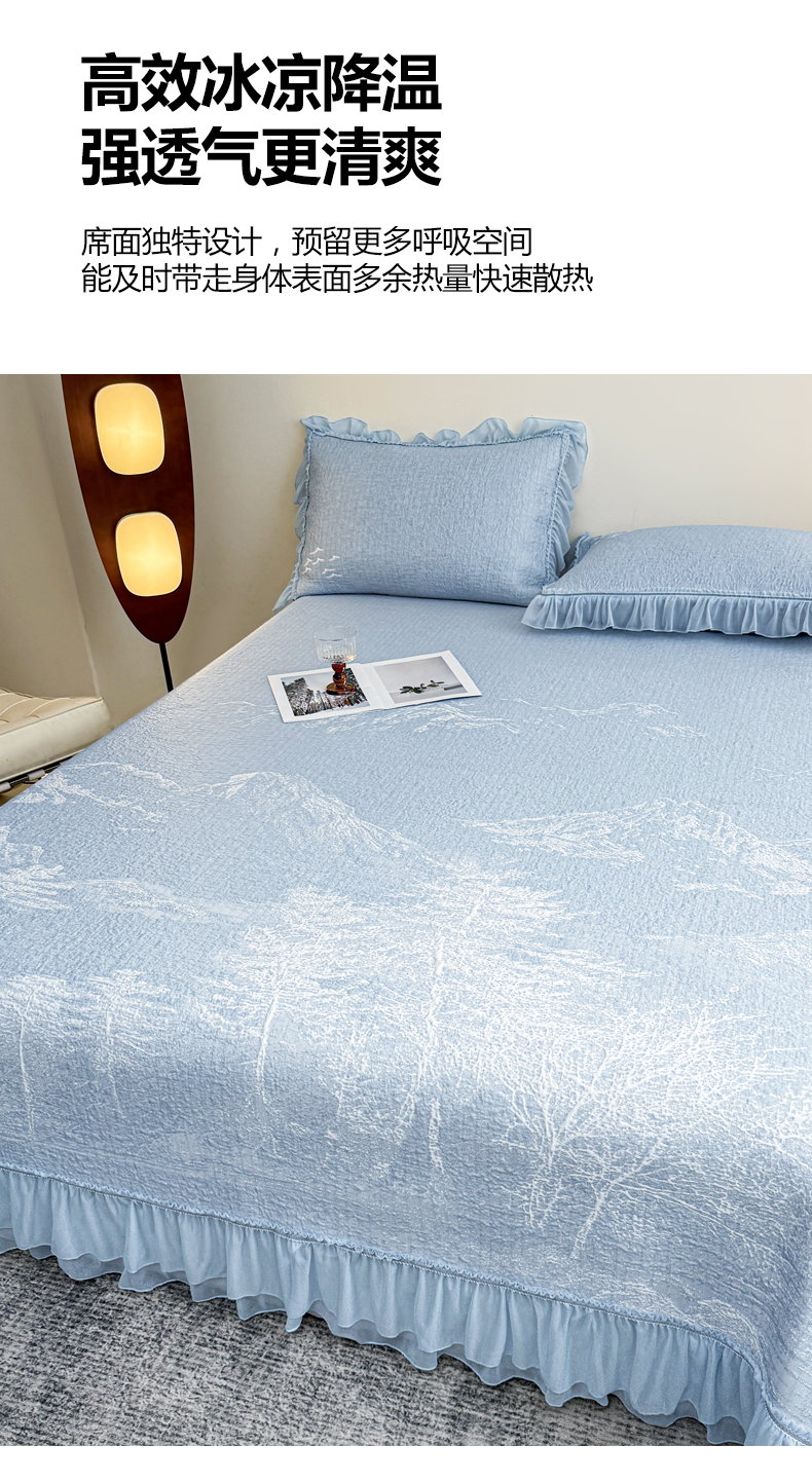 (总)慕木家纺 2026新款A类三明治复合乙纶提花冰豆豆花边床盖款床裙水墨丹青系列(提供买家秀)