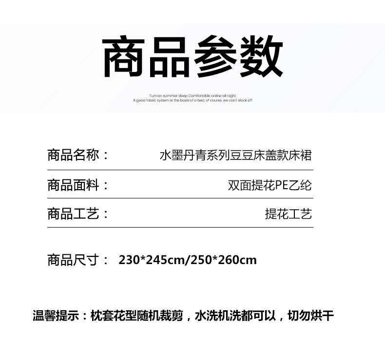 商品名称:(总)慕木家纺 2026新款A类三明治复合乙纶提花冰豆豆花边床盖款床裙水墨丹青系列(提供买家秀)