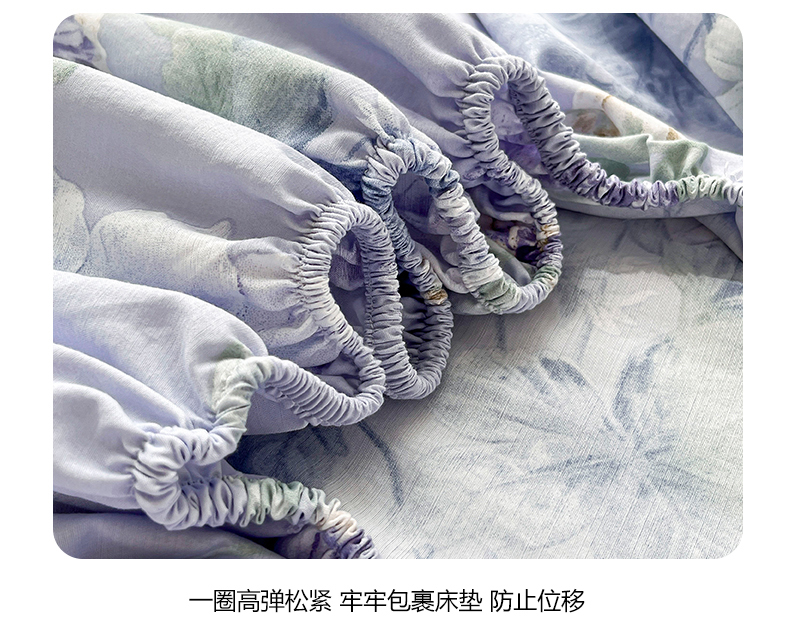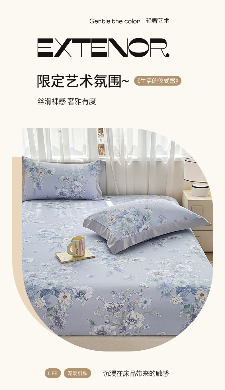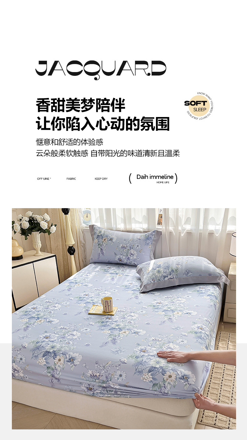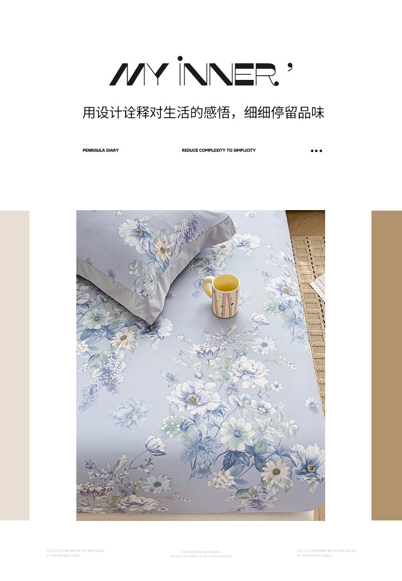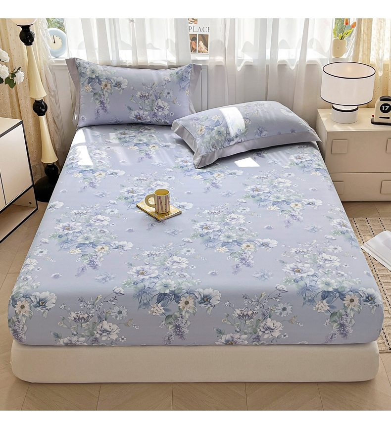 • 91家纺网 家纺一手货源 找家纺 慕木家纺 2026新款A类纯色印花慕丝棉床笠系列(抽空压缩可供跨境)(提供买家秀) 蓝庭叙