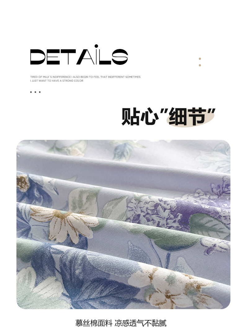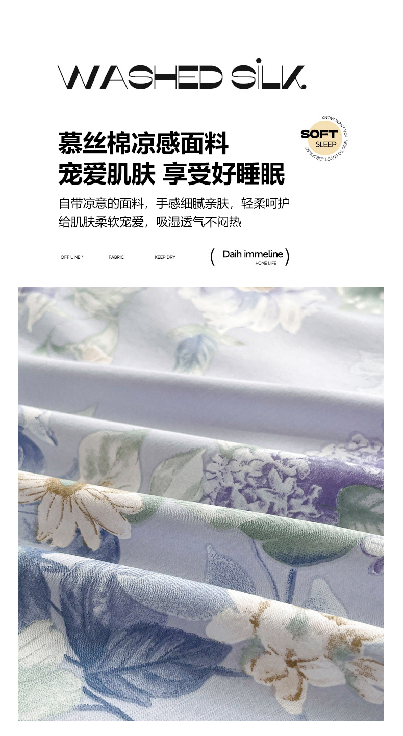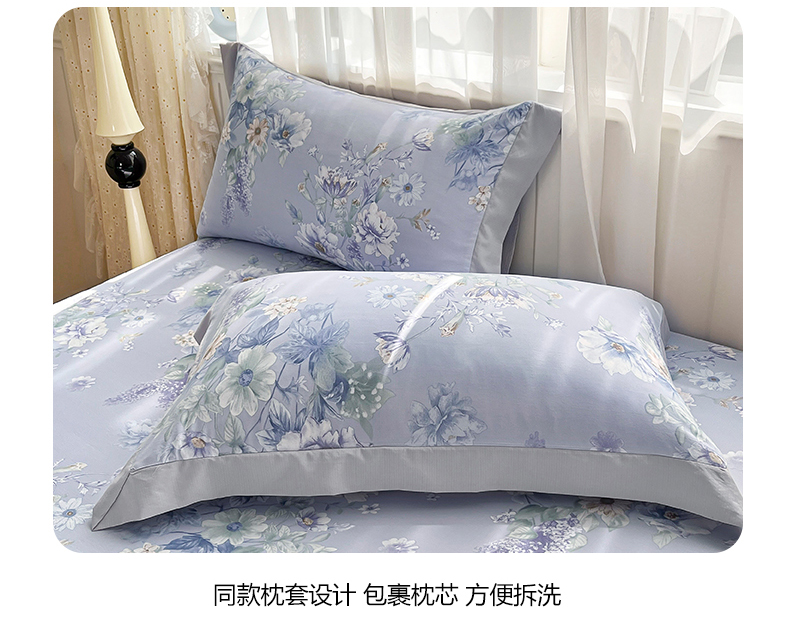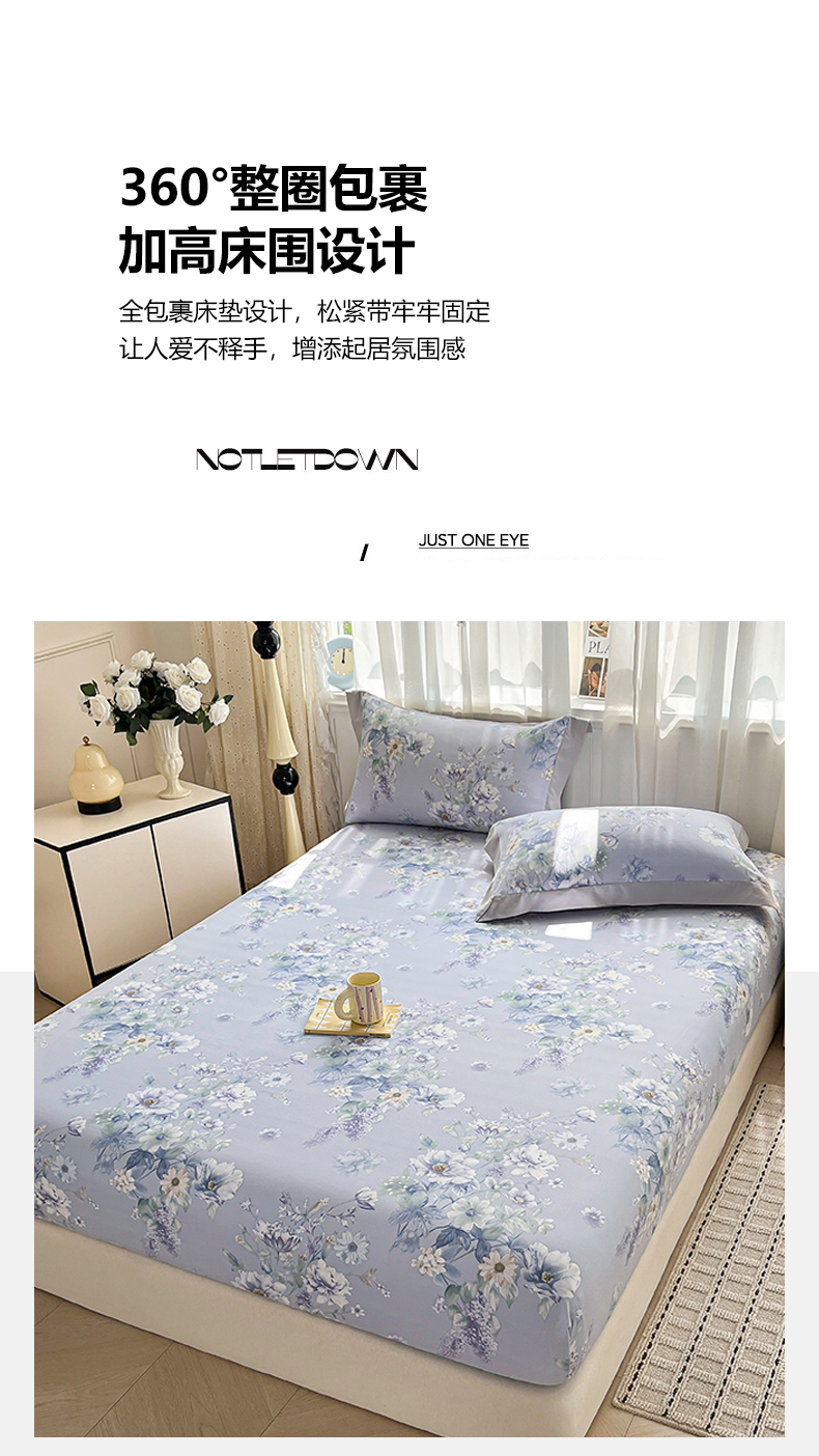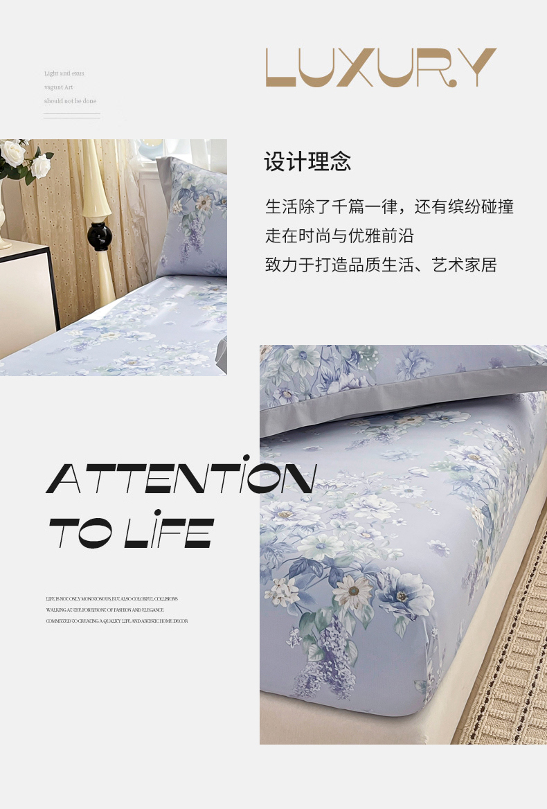 • 91家纺网 家纺一手货源 找家纺 慕木家纺 2026新款A类纯色印花慕丝棉床笠系列(抽空压缩可供跨境)(提供买家秀) 蓝庭叙