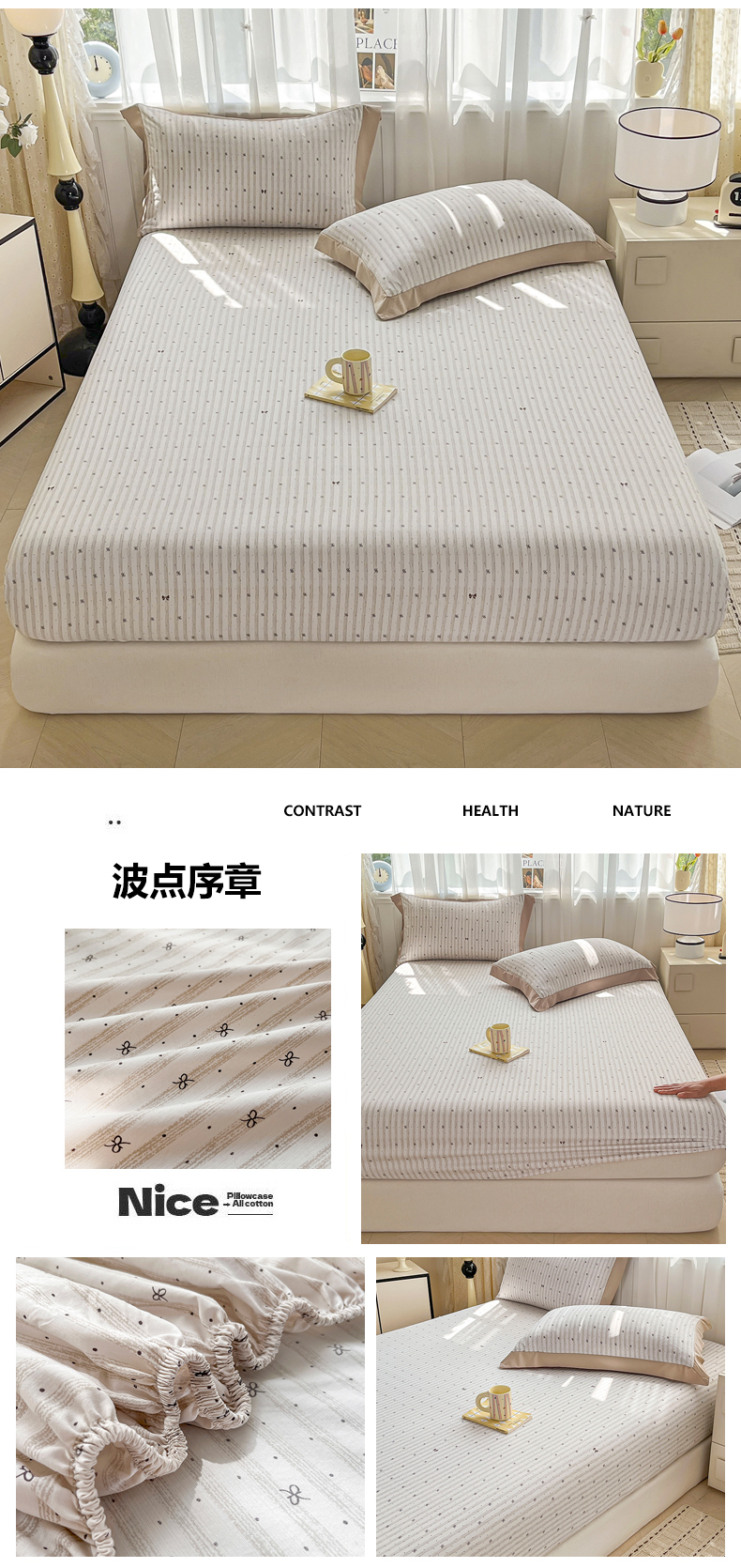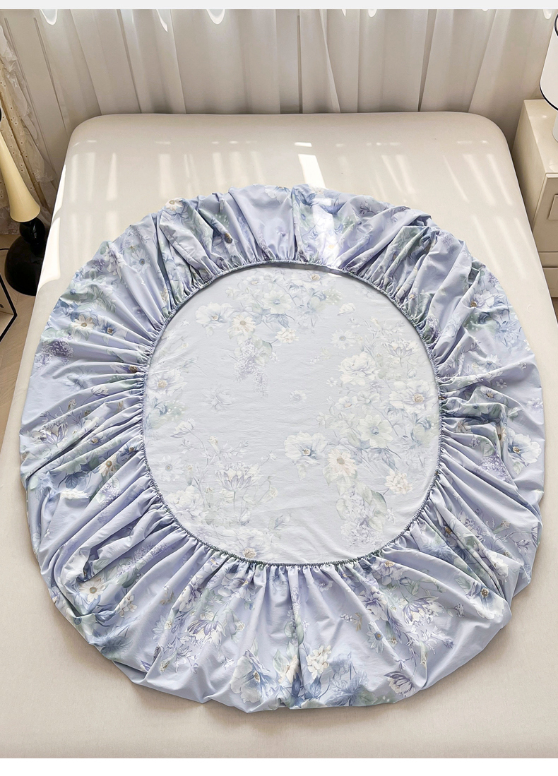 慕木家纺 2026新款A类纯色印花慕丝棉床笠系列(抽空压缩可供跨境)(提供买家秀) 蓝庭叙