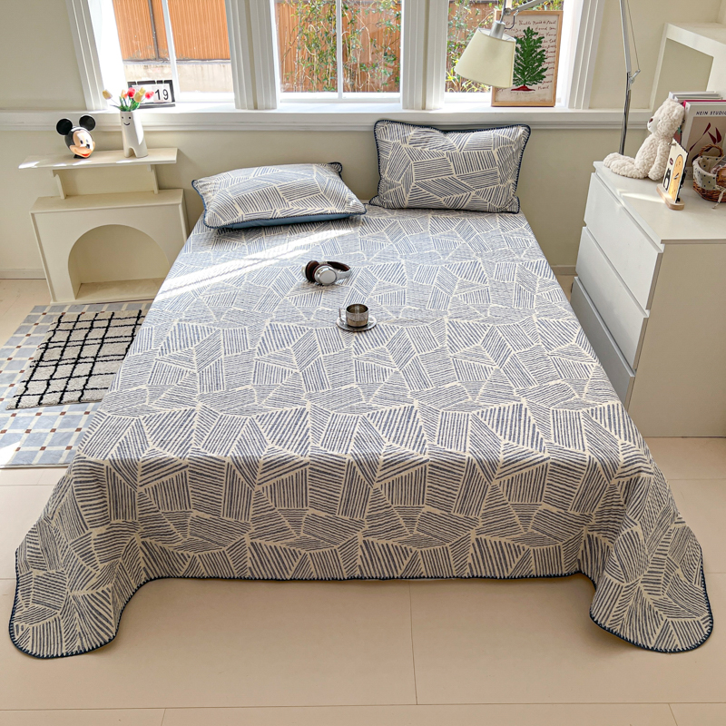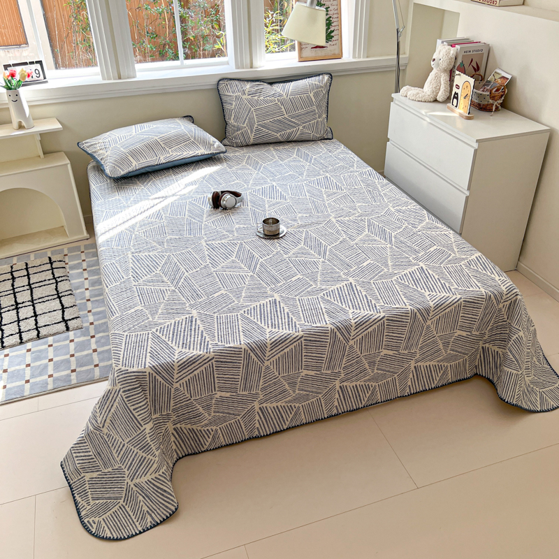 商品名称:禾沐 2026新款泡芙纱三角针床盖夏被四件套 浅川纹
