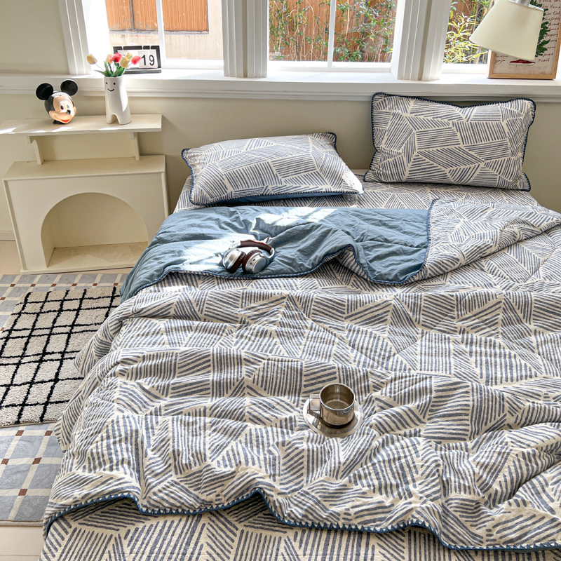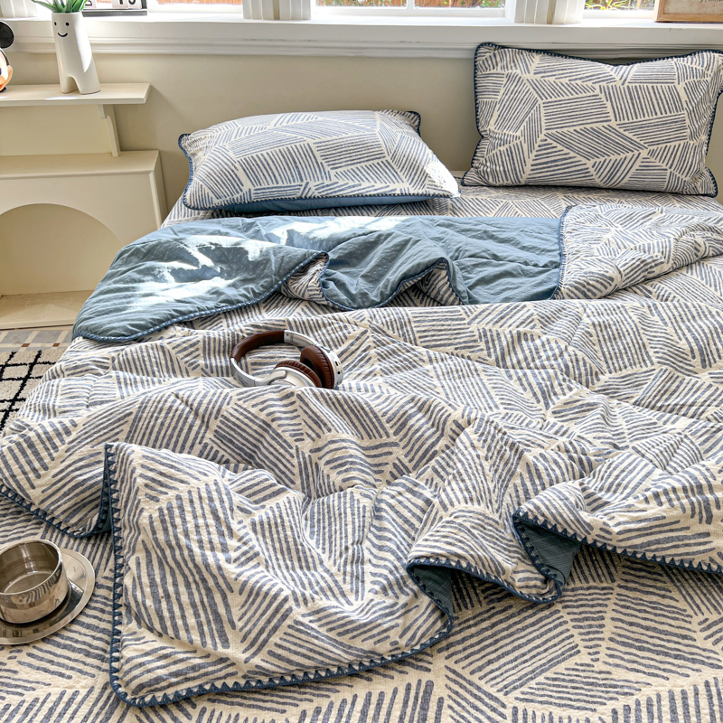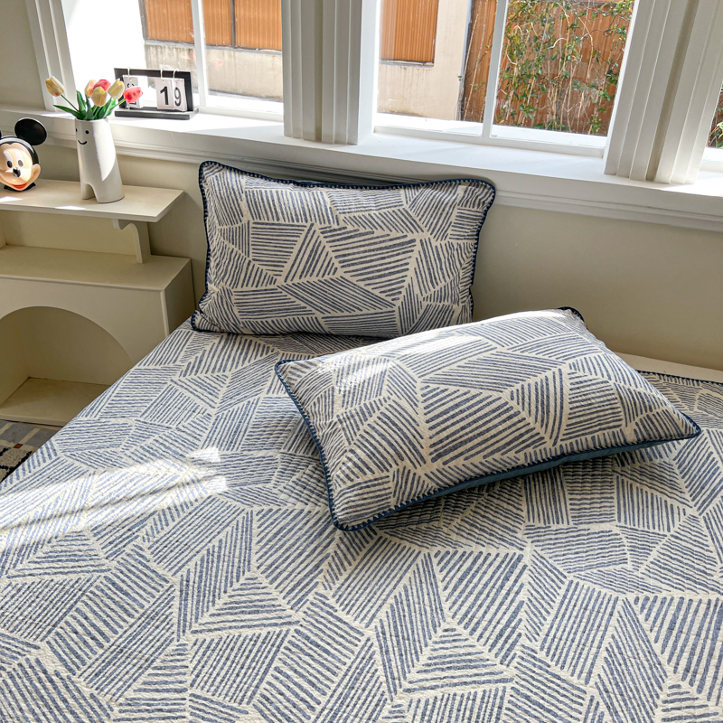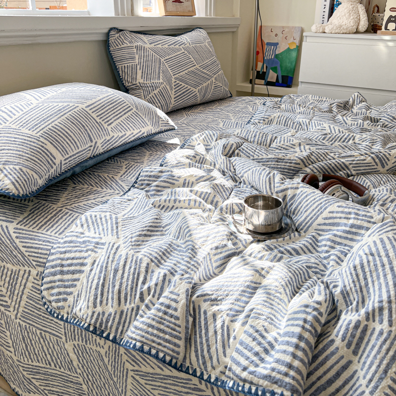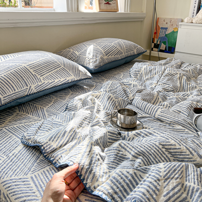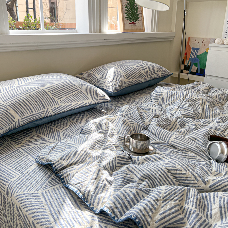 禾沐 2026新款泡芙纱三角针床盖夏被四件套 浅川纹
