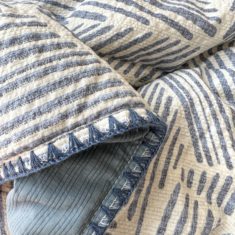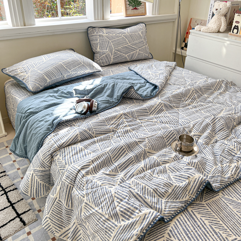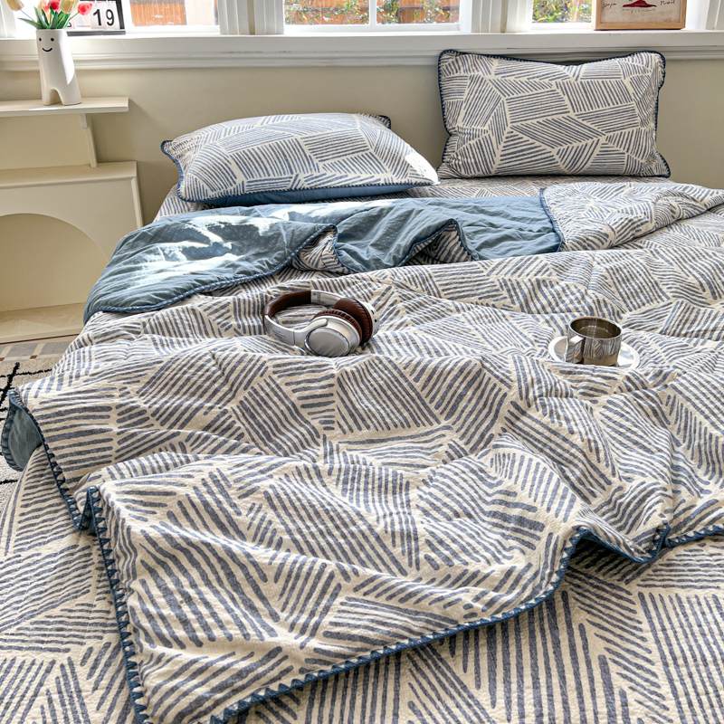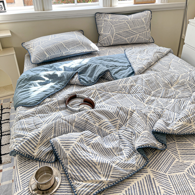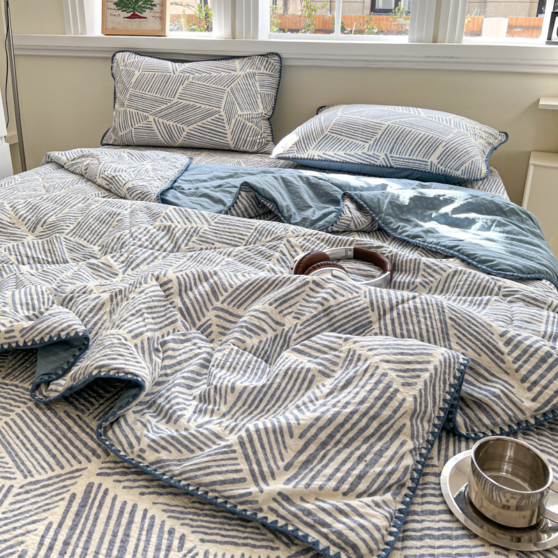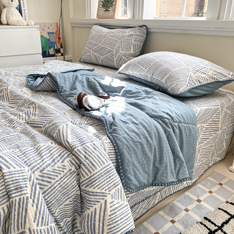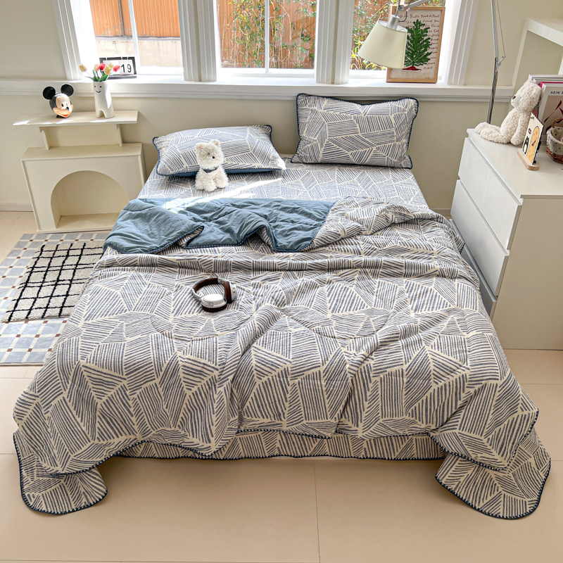 禾沐 2026新款泡芙纱三角针床盖夏被四件套 浅川纹
