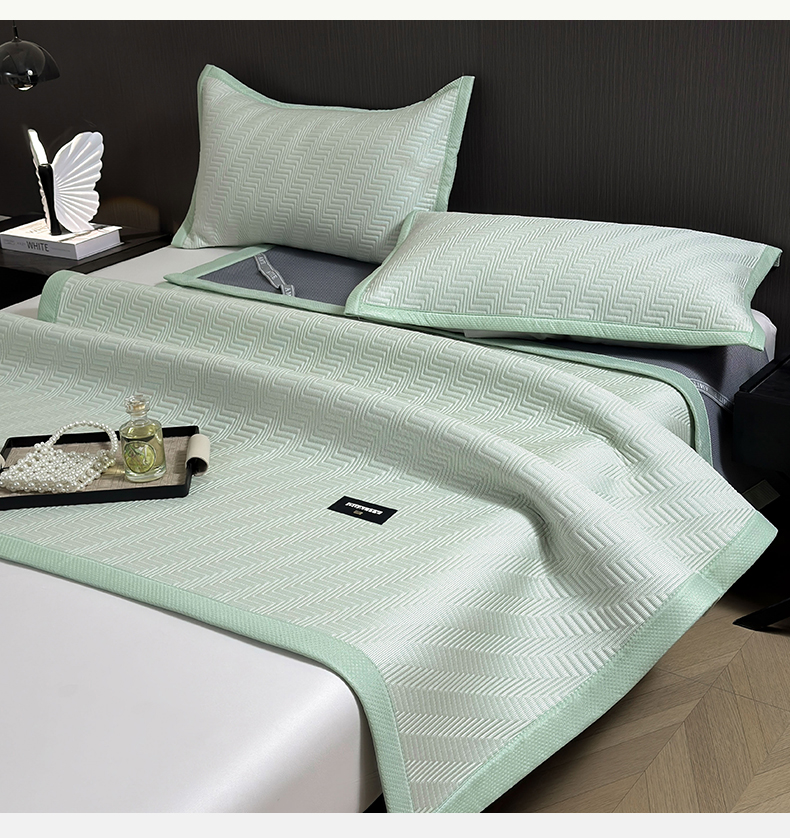 当前位置: 91家纺网 > 商品网购 > 床上用品 > 凉席 > 其他凉席 > 耐思家纺 2026新款A类高克重三明治复合乙纶提花冰豆豆凉席床笠冰棱斜纹系列(提供买家秀) 冰棱斜纹-绿床席款