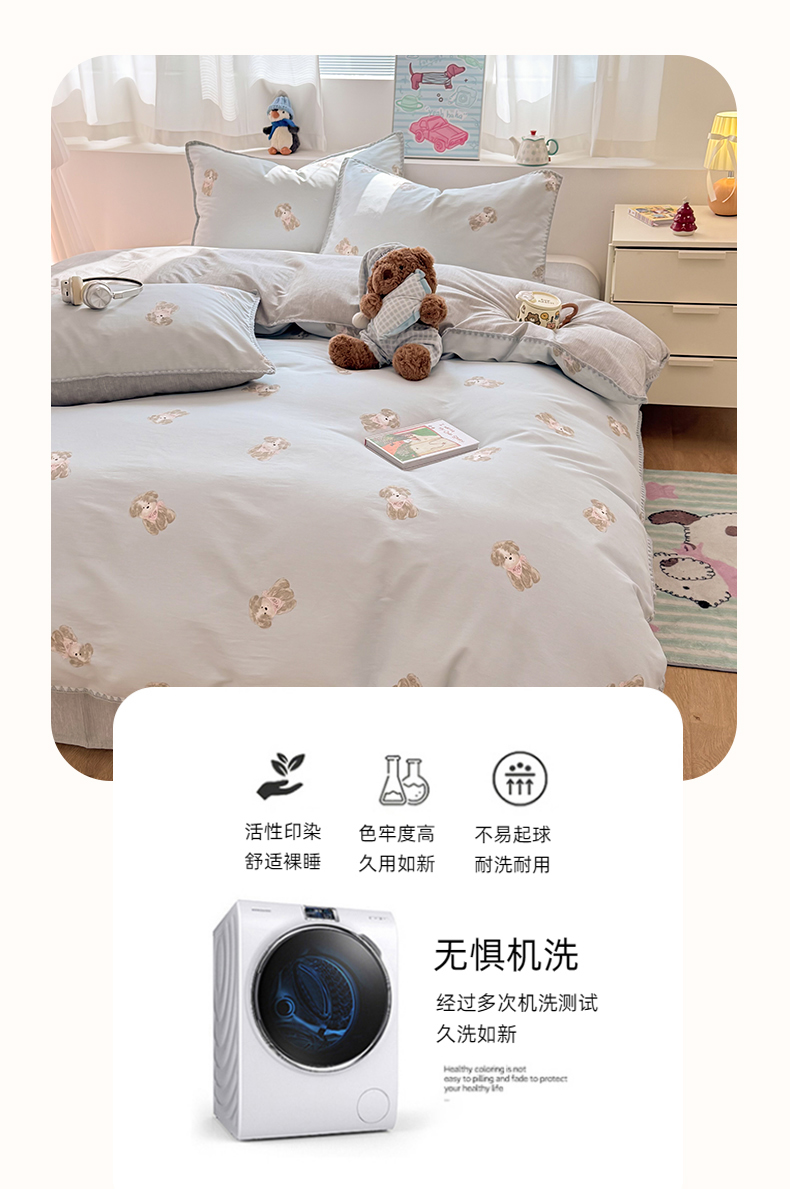 当前位置: 91家纺网 > 商品网购 > 床品套件 > 四件套 > 全棉普通四件套 > 简宜家居(朝初家纺) 2026新款贝壳边卡通可爱纯棉全棉四件套 Nice狗狗-兰