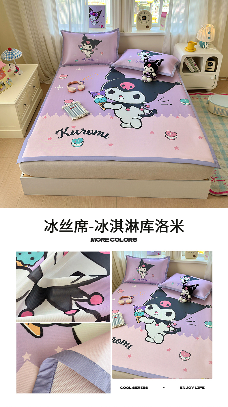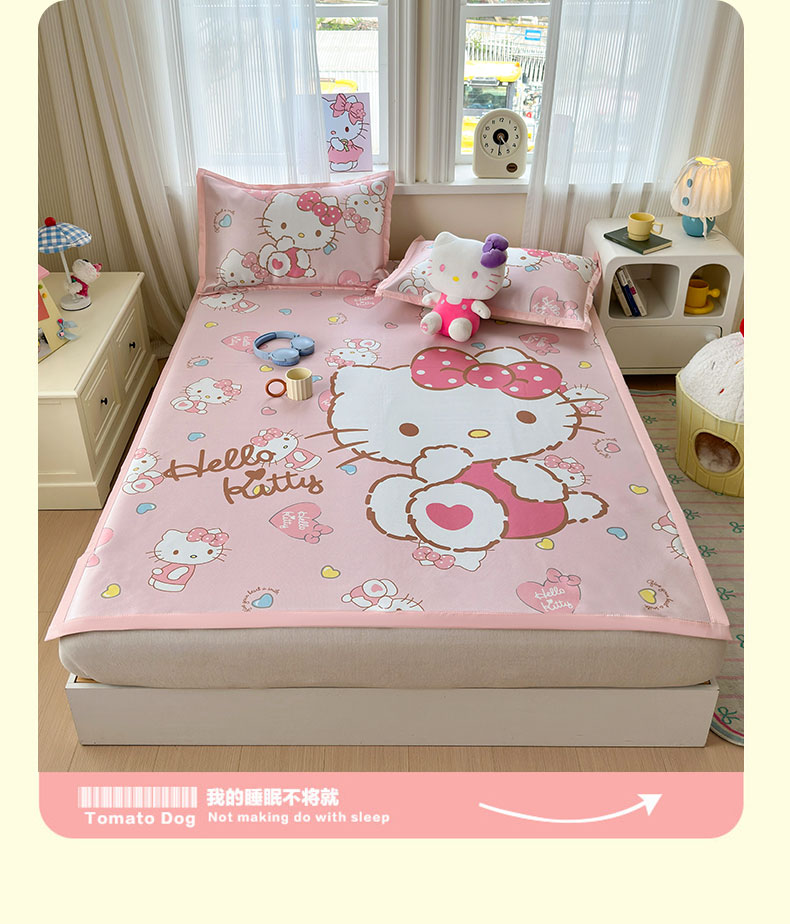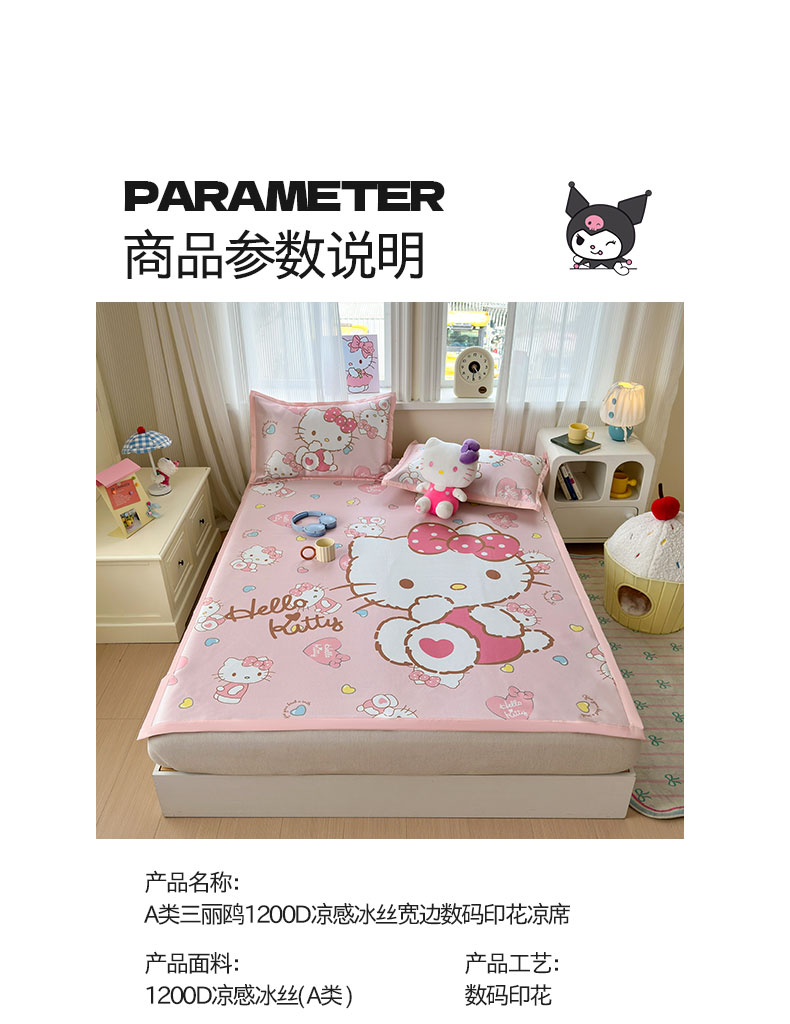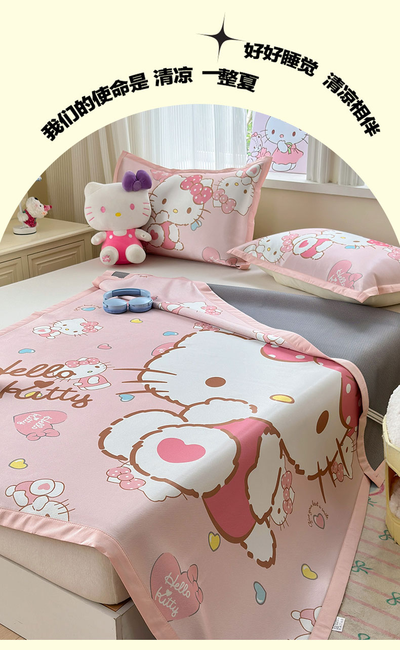 商品名称:(总)桃子家居 2026新款A类三丽鸥授权数码印花中分子1200D凉感冰丝宽边凉感软席凉席席子