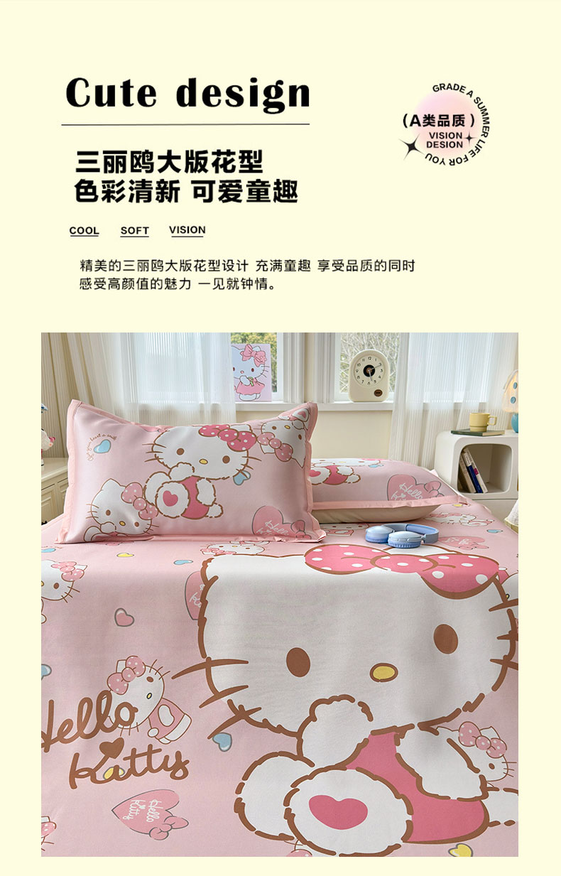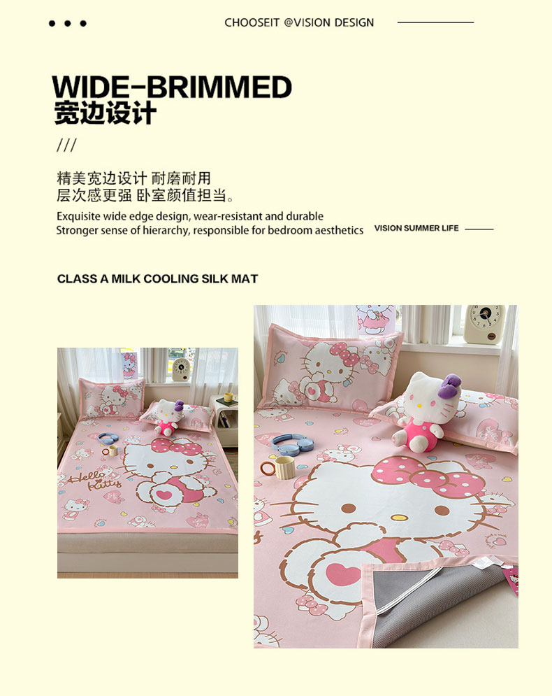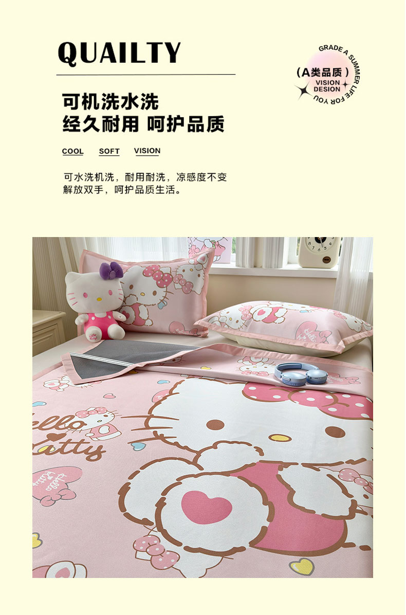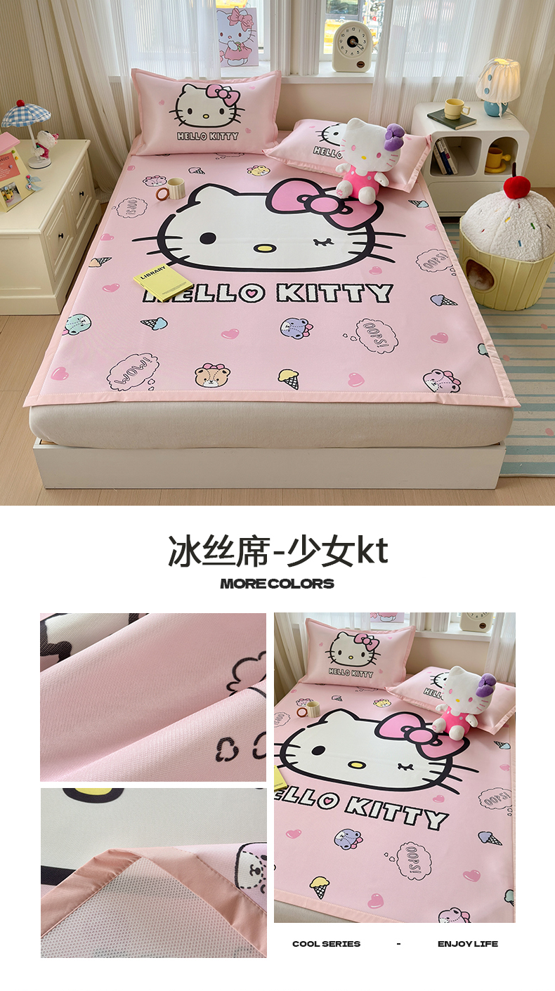 商品名称:(总)桃子家居 2026新款A类三丽鸥授权数码印花中分子1200D凉感冰丝宽边凉感软席凉席席子