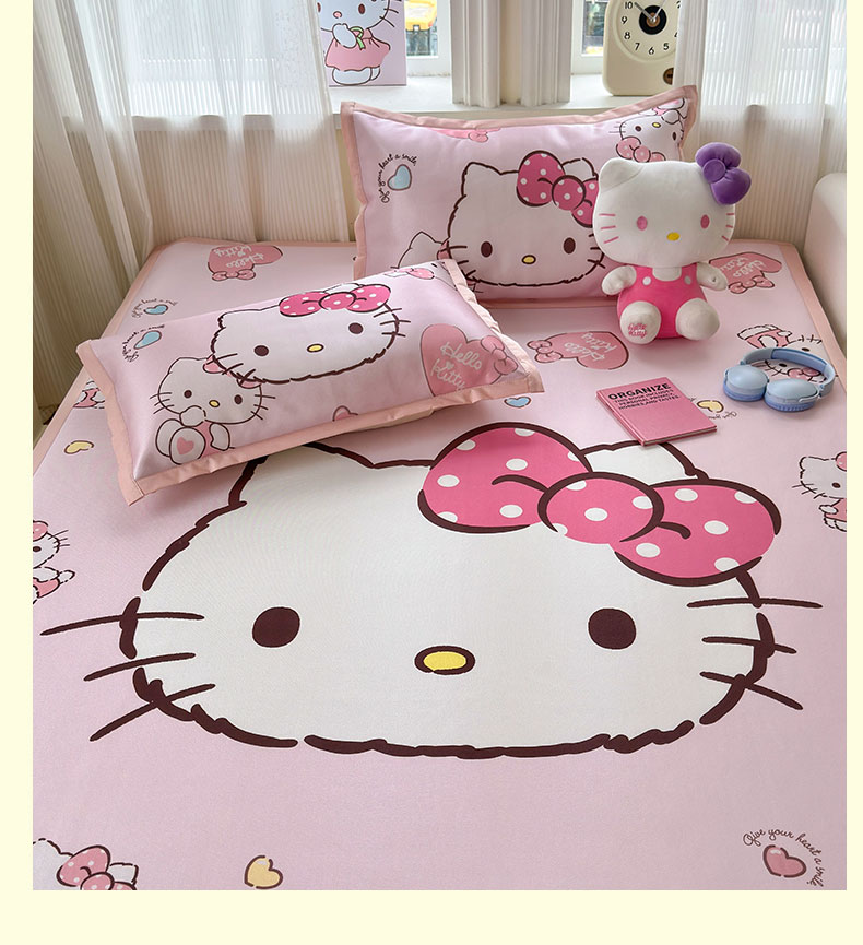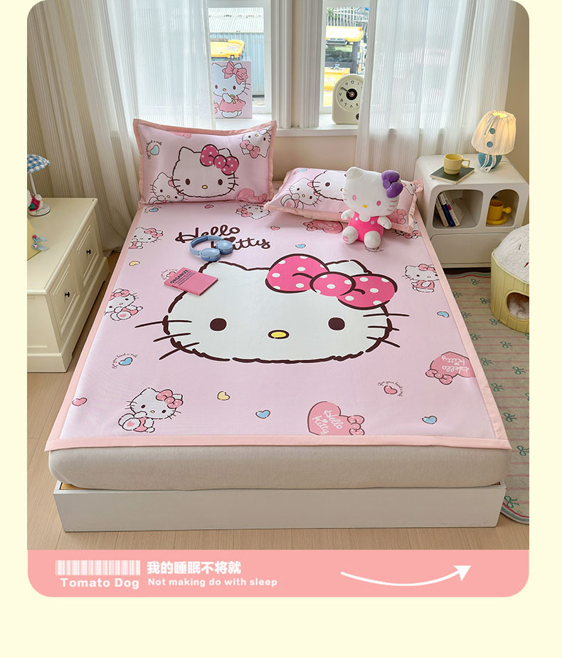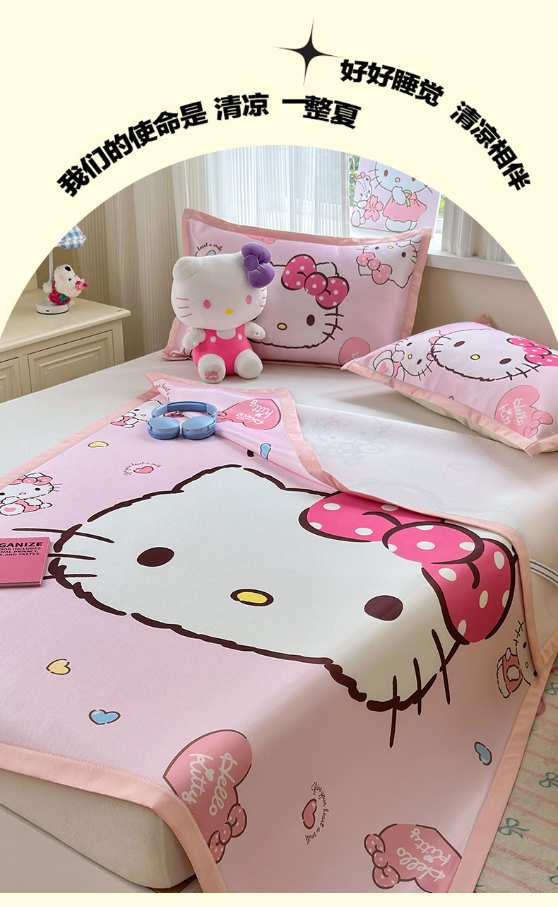 桃子家居 2026新款A类三丽鸥授权数码印花中分子1200D凉感冰丝宽边凉感软席凉席席子 冰丝席-美美kt粉
