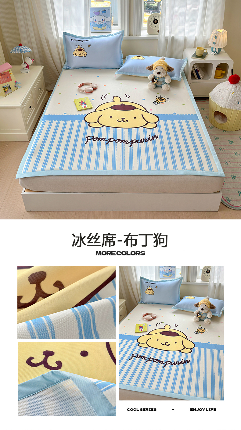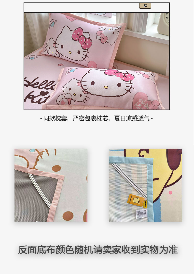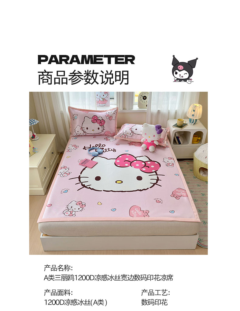 商品名称:桃子家居 2026新款A类三丽鸥授权数码印花中分子1200D凉感冰丝宽边凉感软席凉席席子 冰丝席-美美kt粉