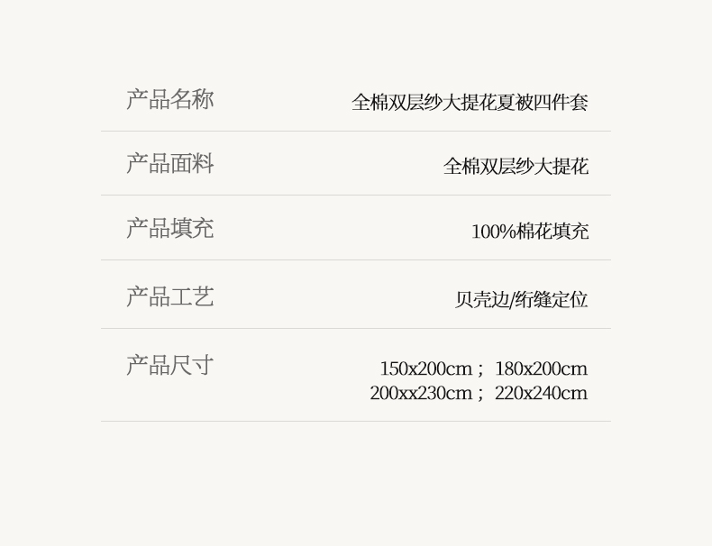 200x230cm单夏被 | ¥140.00 |