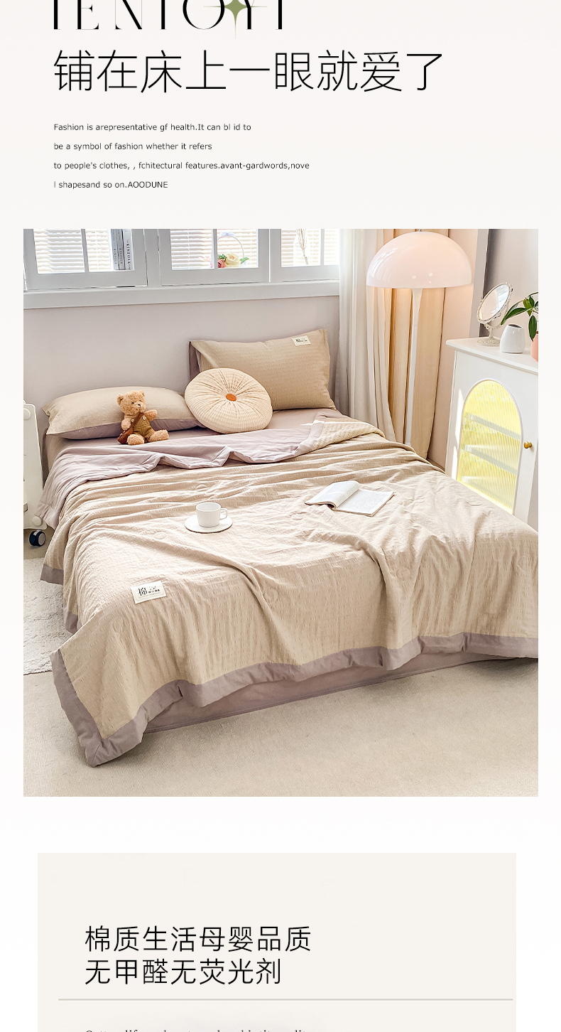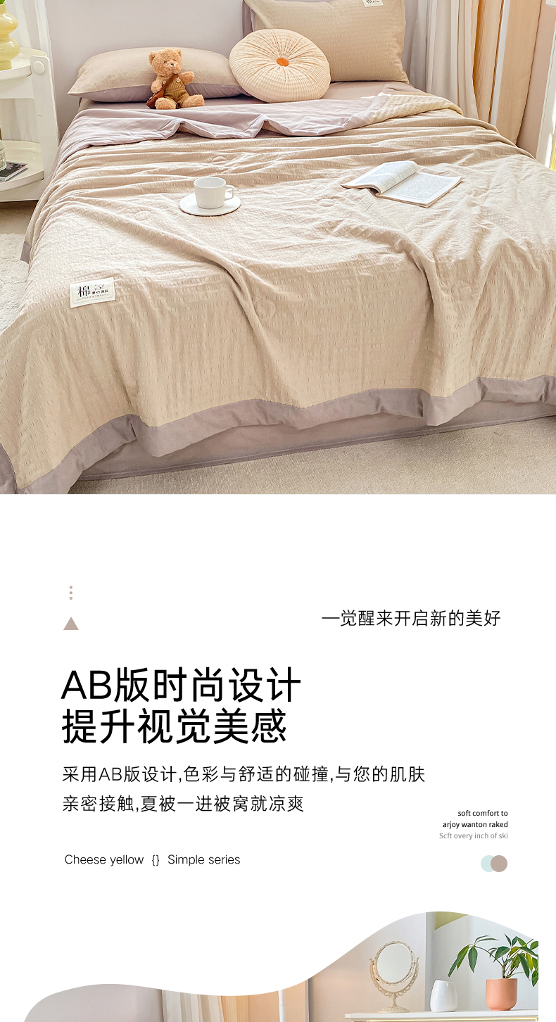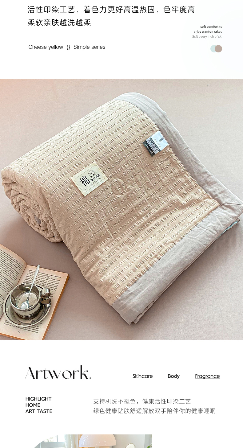 鸣升家纺 2026新款A类全棉提花皱皱纱夏被100%棉花被空调被 香槟色
