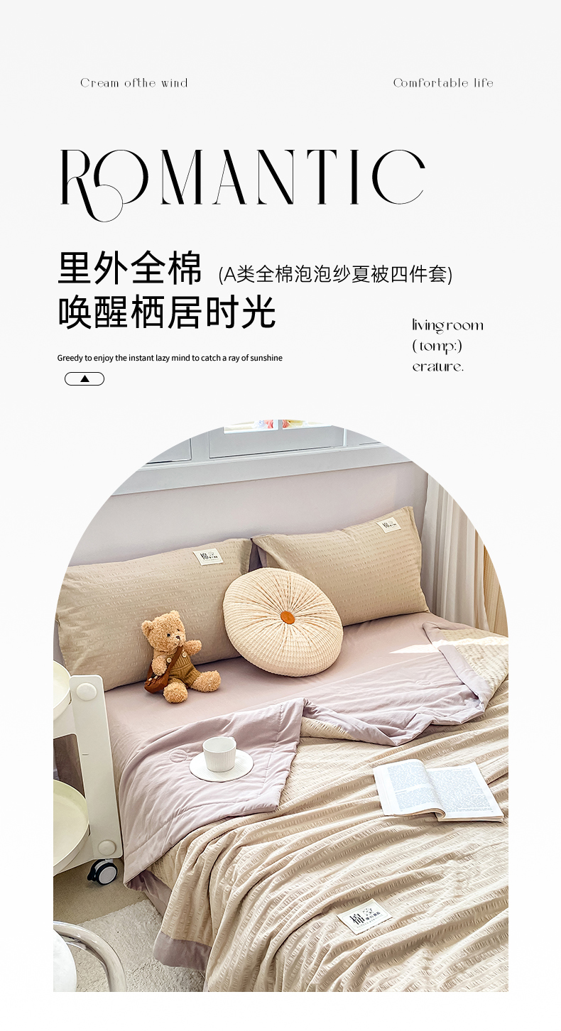 (总)鸣升家纺 2026新款A类全棉提花皱皱纱夏被100%棉花被空调被,气质灰,浅水蓝,香槟色,珍珠白
