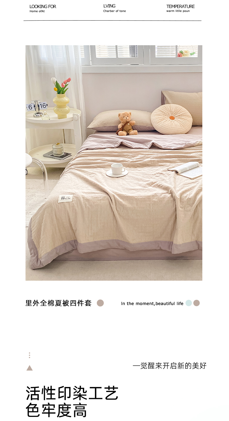 (总)鸣升家纺 新款里外全棉100%新疆棉花被夏被四件套,暗灰,本白,黄色,绿色,浅粉,浅蓝,浅驼,深蓝