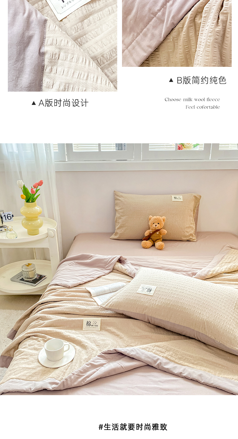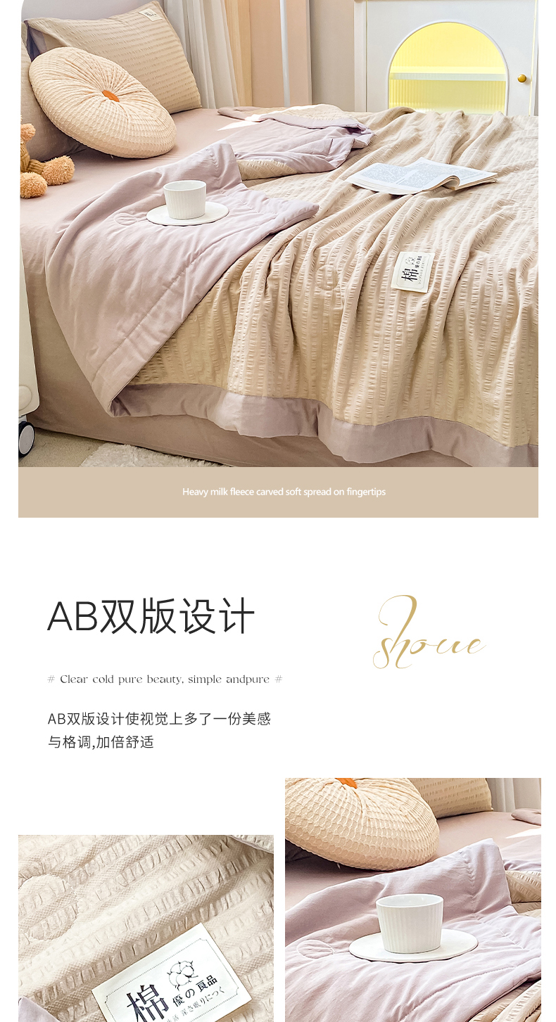 (总)2025新款全棉双层皱皱沙纯色花边30%大豆夏凉被纯棉夏被被子被芯,安娜-水绿,安娜-豆沙,安娜-浅灰,安娜-雾蓝,安娜-奶咖