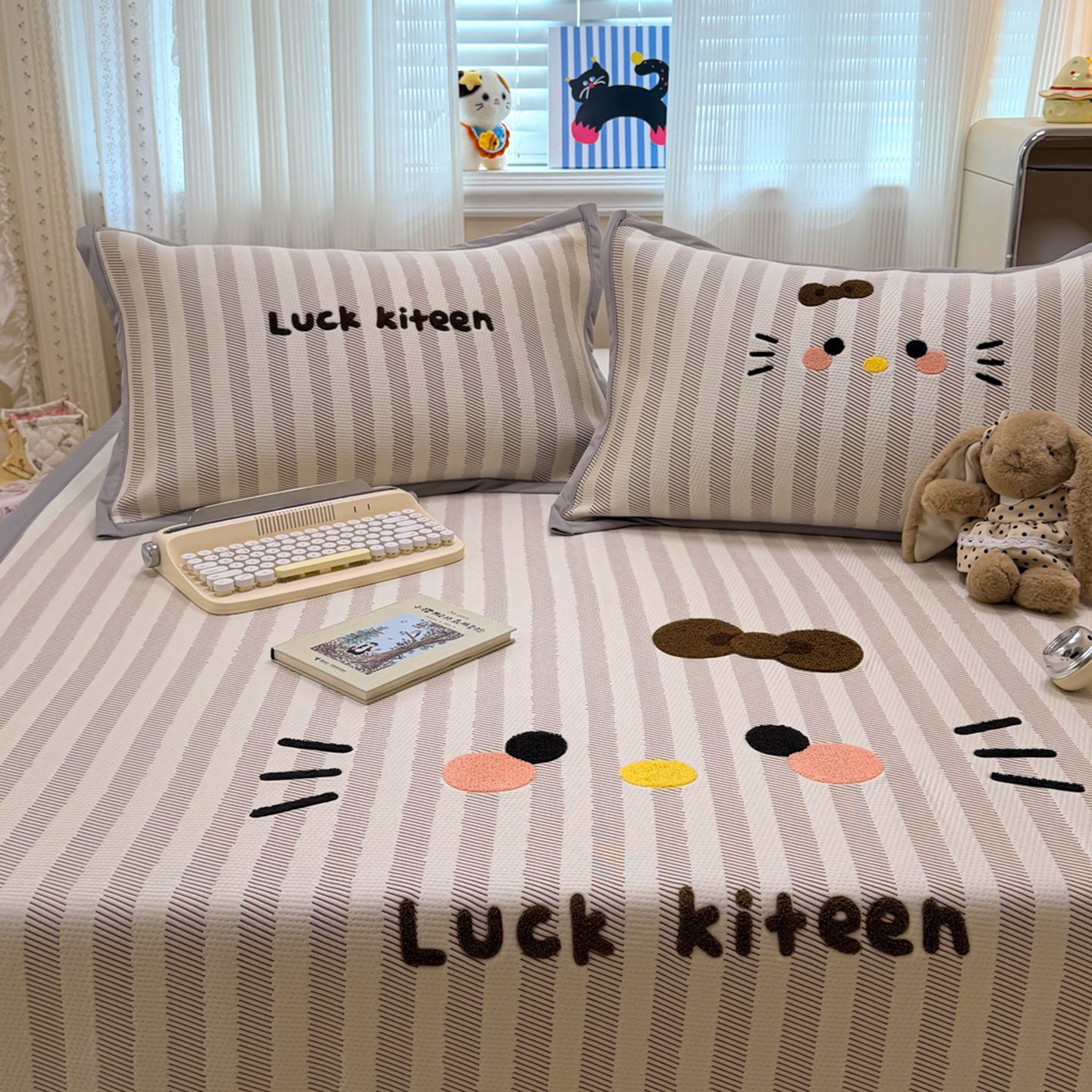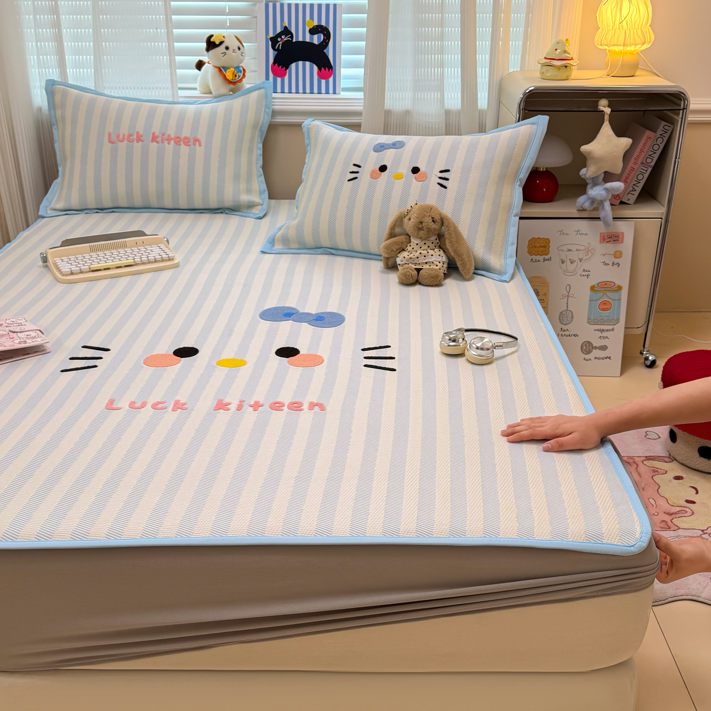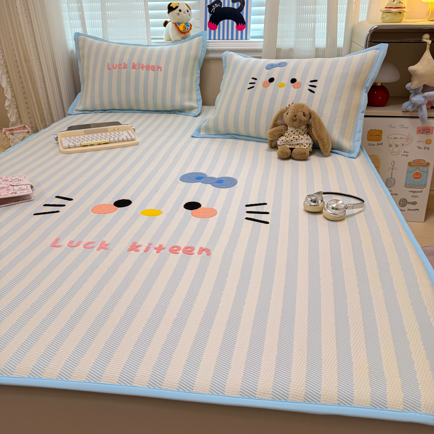 懒猫家纺 2026新款好运猫毛巾绣PE凉感中分子床席床笠凉席席子 海盐-床笠款