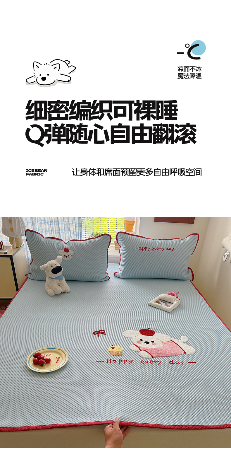 (总)顾里家纺 2026新款Pe凉感仿冰藤软席凉席三件套,滑板腊肠狗,苹果木马,苹果趴熊,甜圈小猫,香蕉熊,组合图仅供展示
