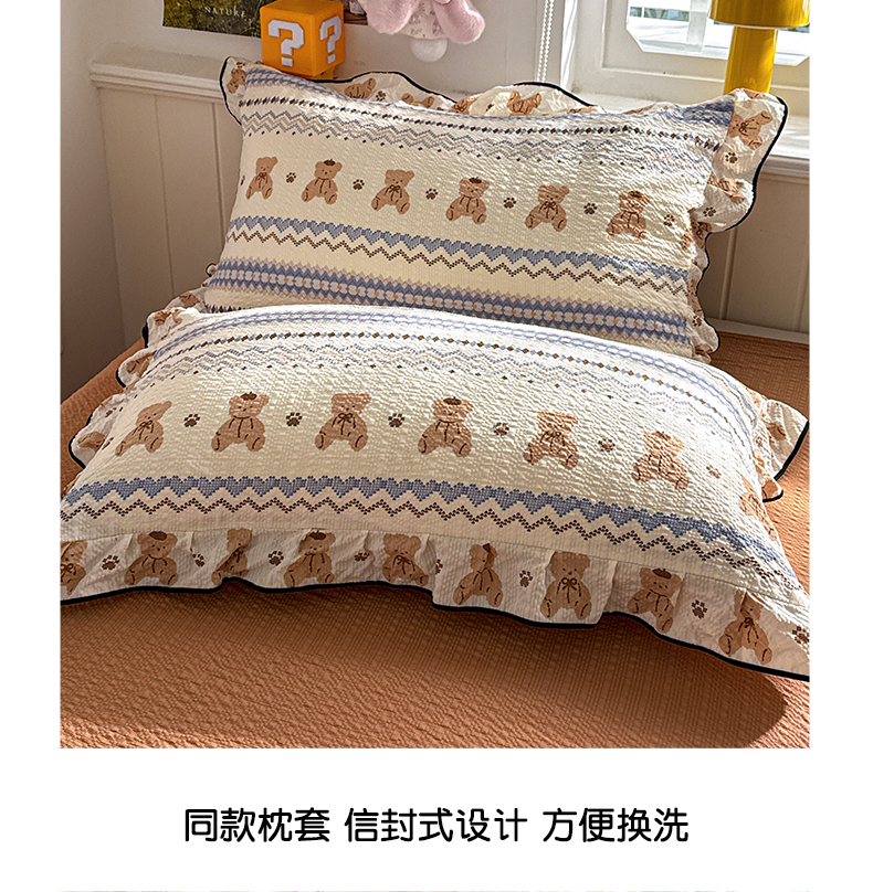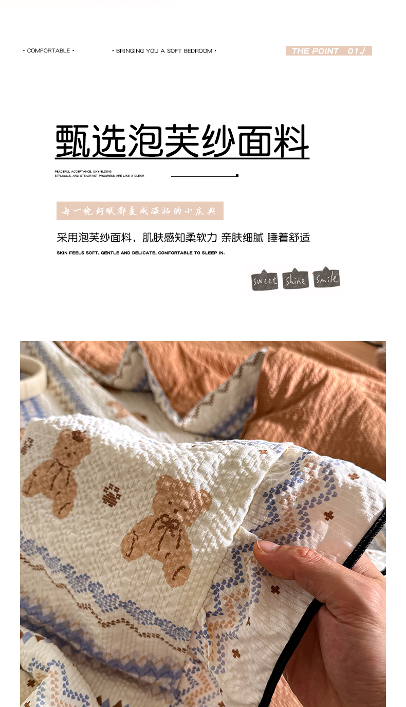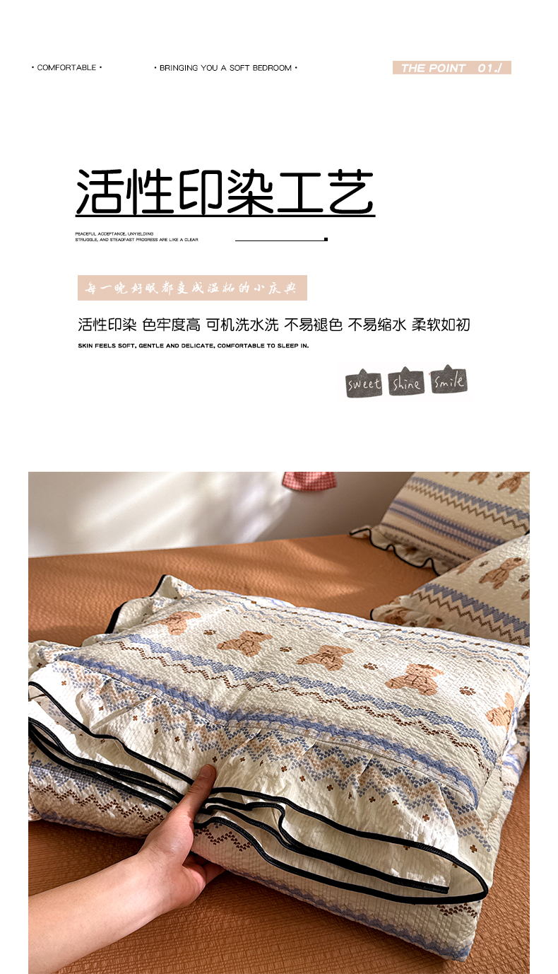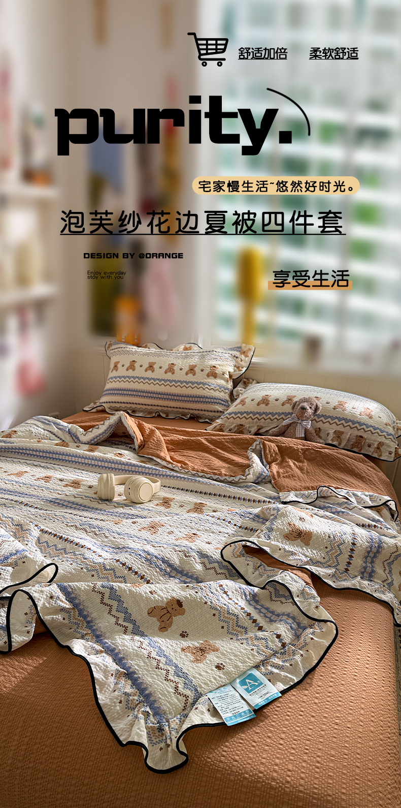 商品名称:水墨江南 2026新款泡芙纱花边夏被四件套 可爱熊