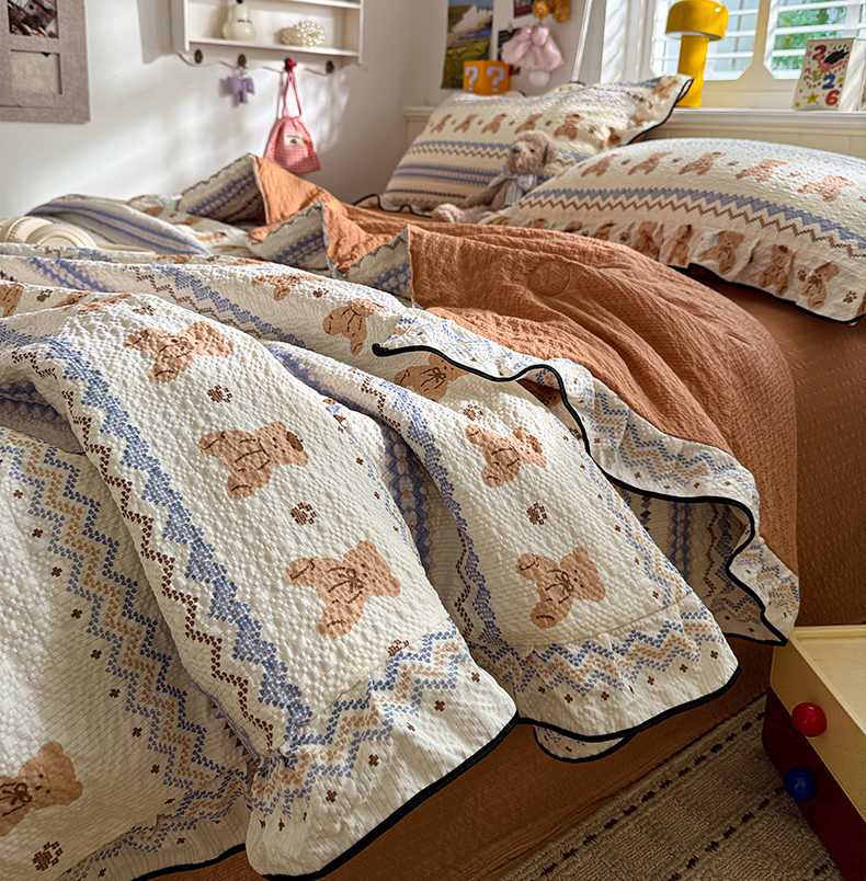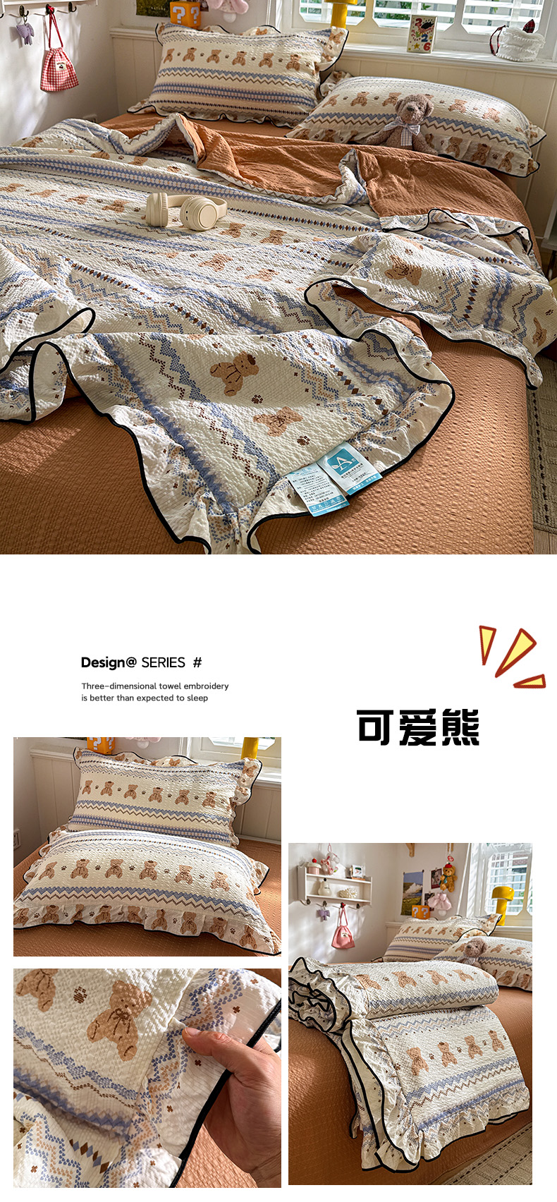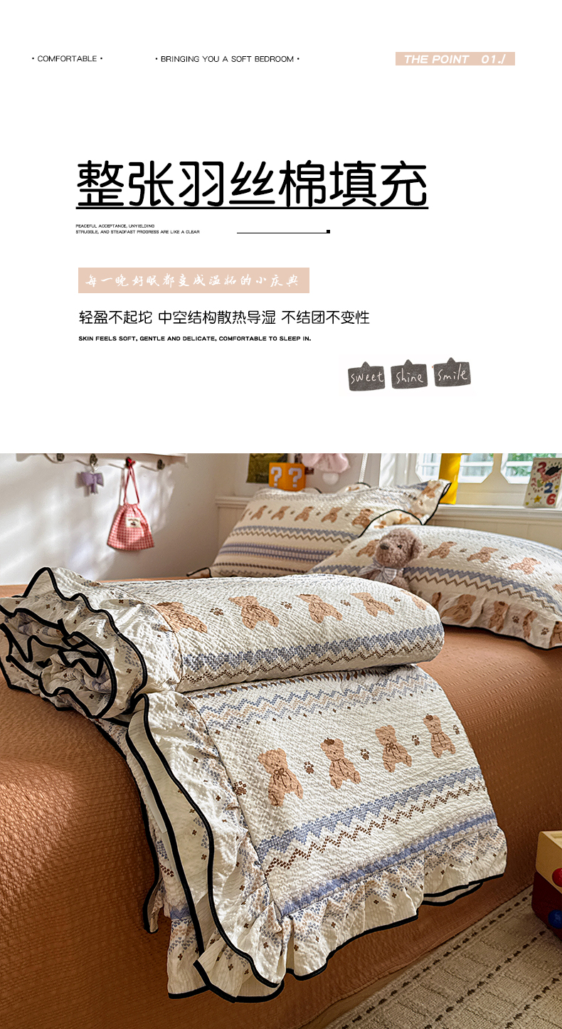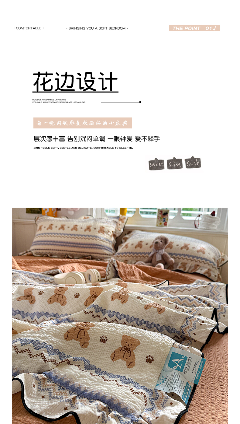 水墨江南 2026新款泡芙纱花边夏被四件套 可爱熊