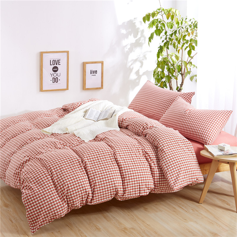 商品名称:例外Home 水洗棉四件套床单款红小格