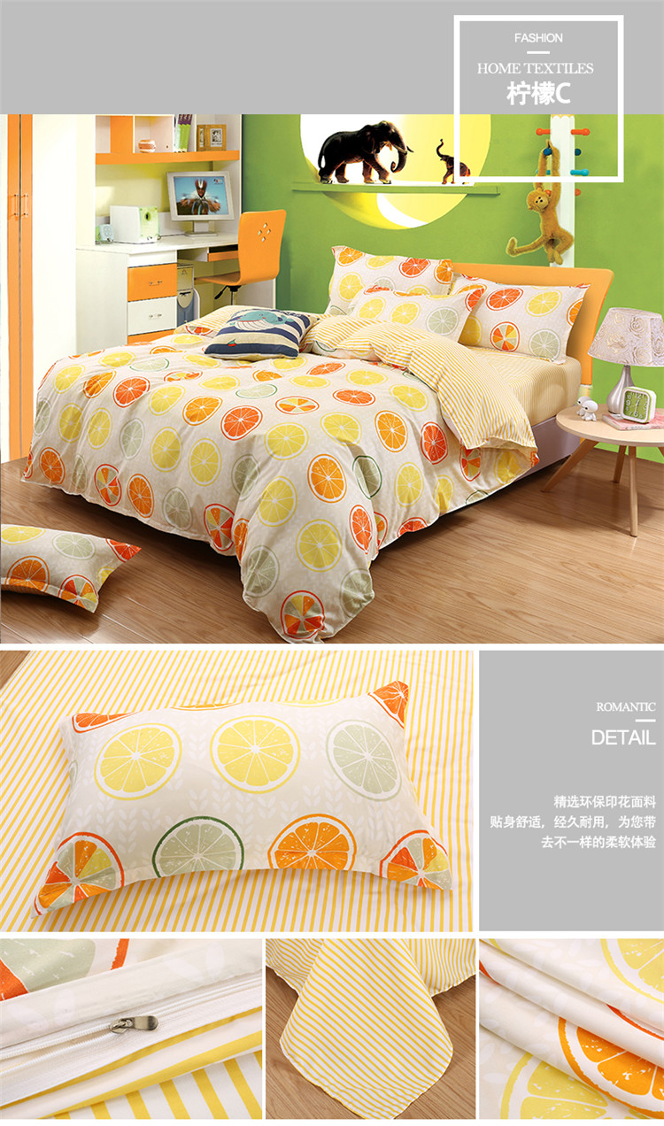 米粒家纺 2018新品芦荟棉四件套柠檬C