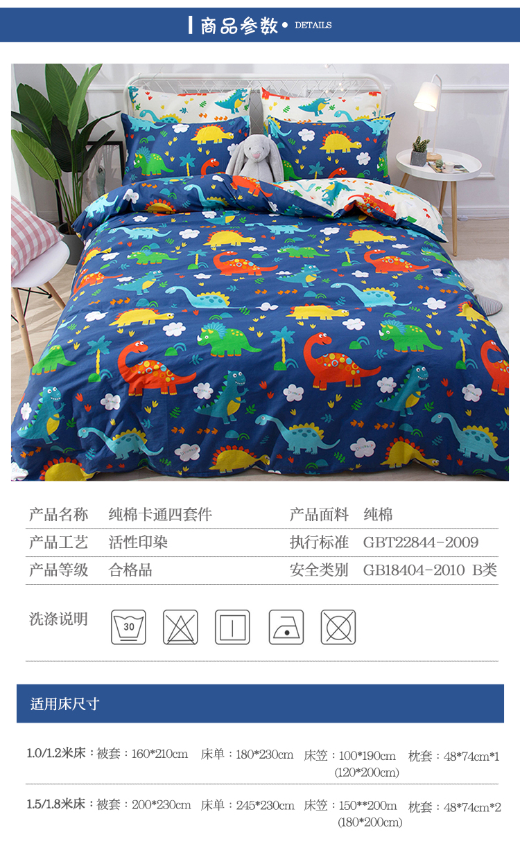 当前位置: 91家纺网 > 商品网购 > 床品套件 > 四件套 > 全棉活性四件套 > 恐龙四件套纯棉双人床单大恐龙全棉三件套单人床笠床上用品