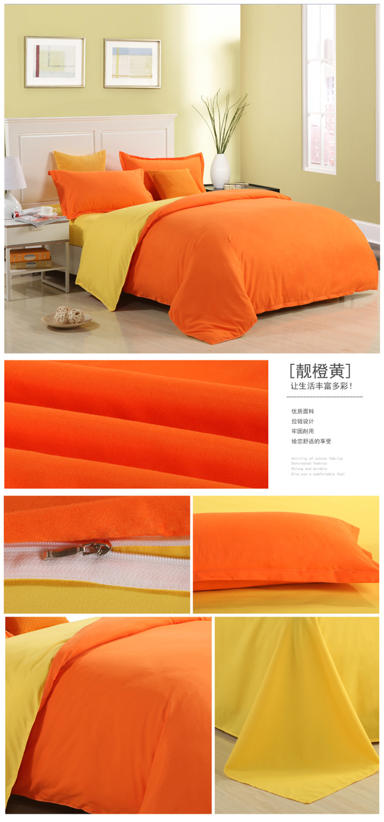 商品名称:贝拉梦 全活性芦荟棉纯色双拼四件套 靓橙黄