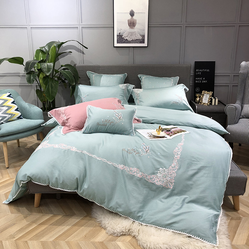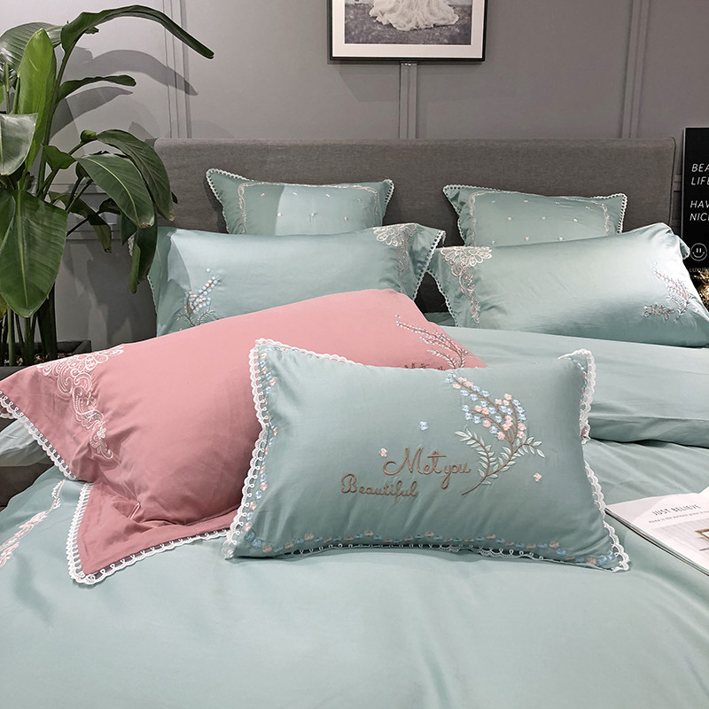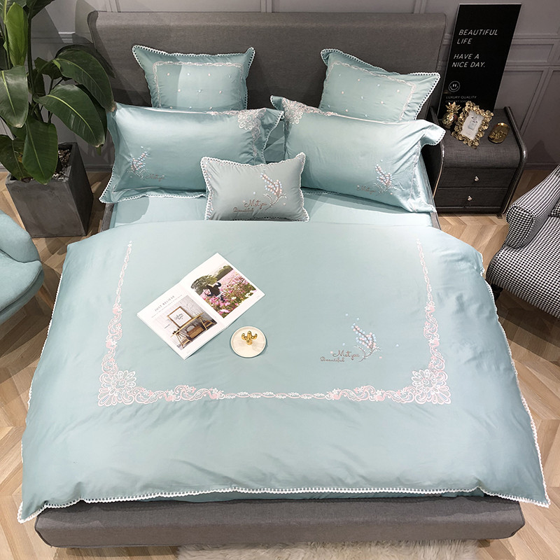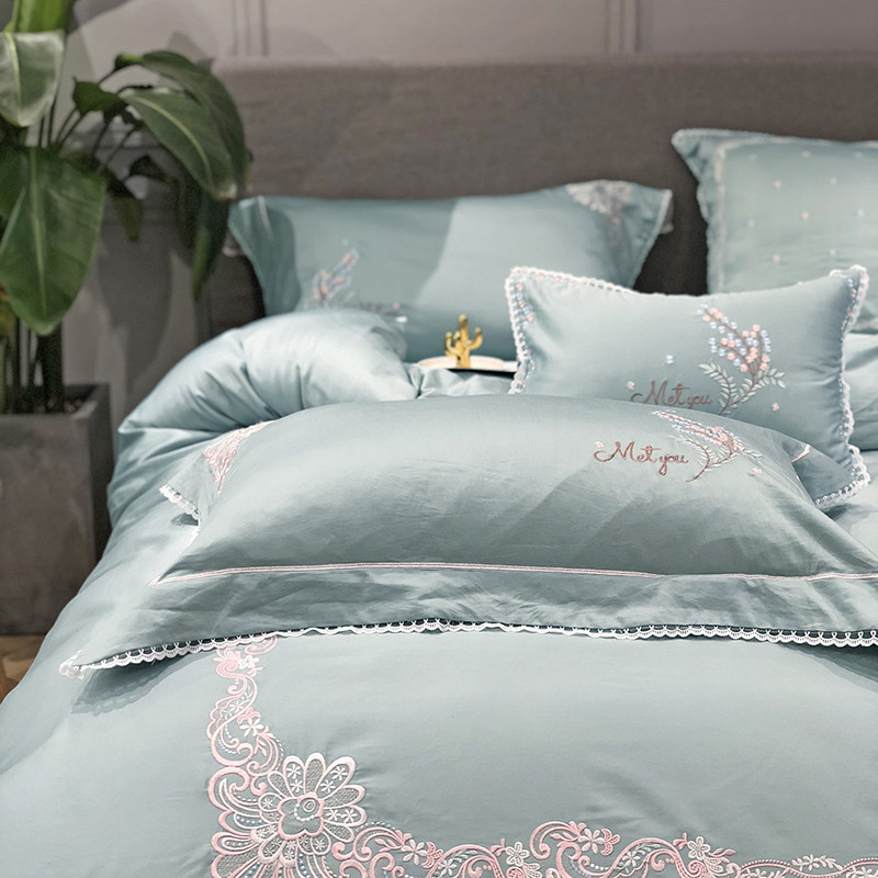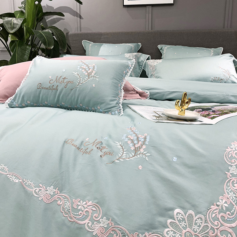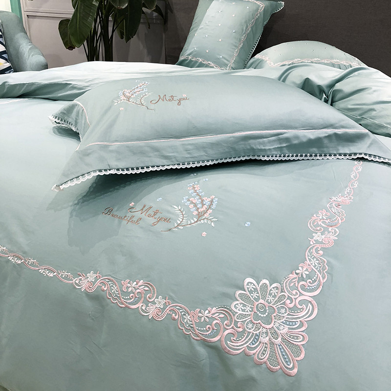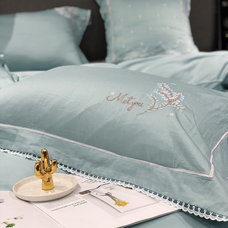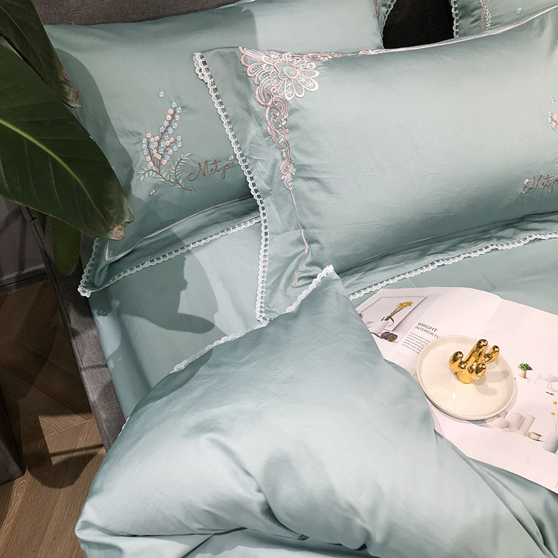 馨蕊家居 2018新款60s全棉磨毛四件套 优莲娜-抹茶绿