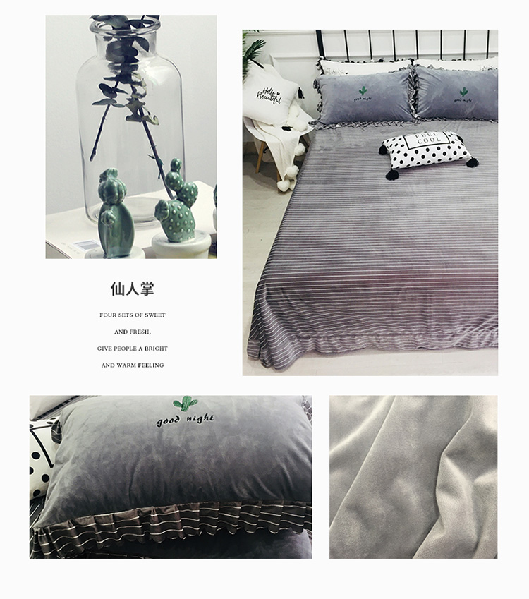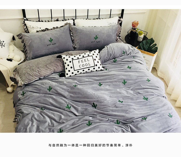 商品名称:简煦圣珂 宝宝绒小清新刺绣保暖四件套 仙人掌