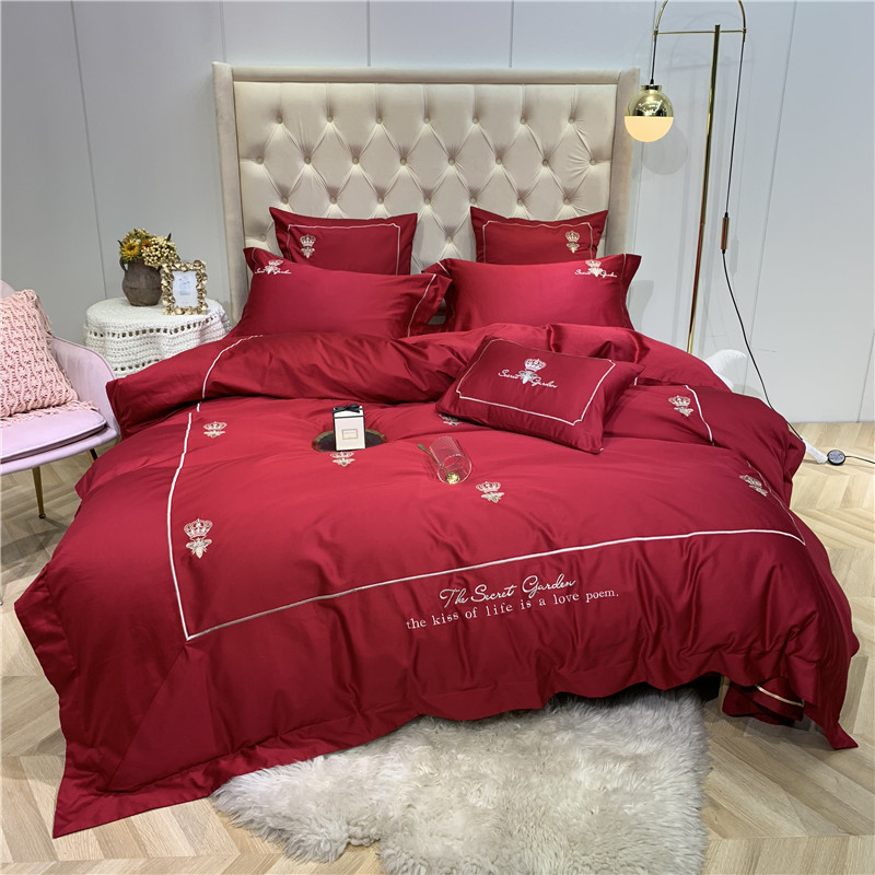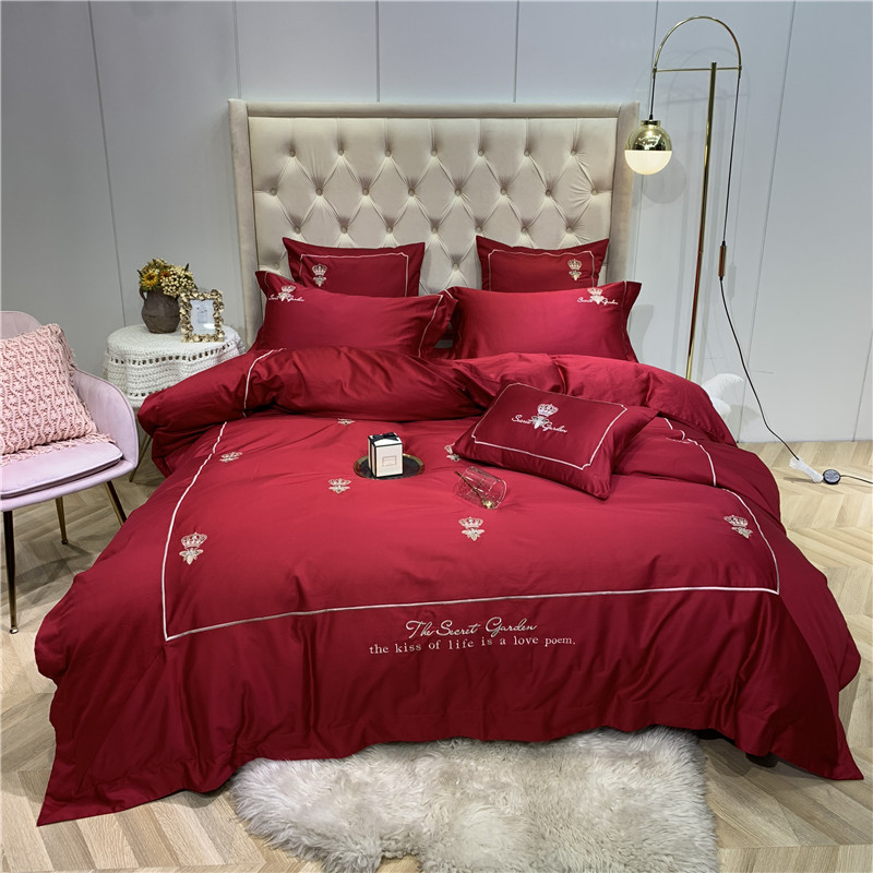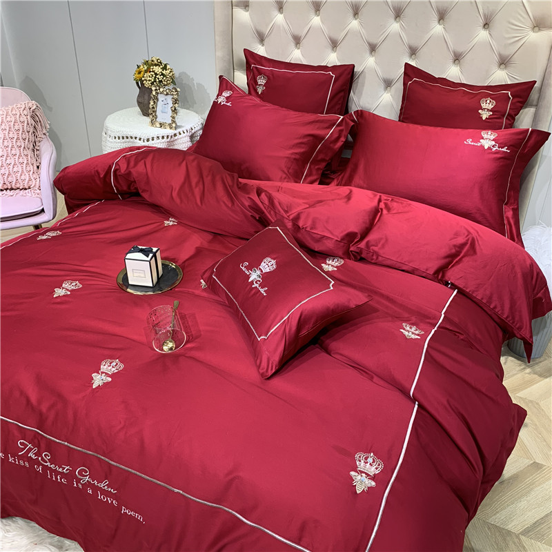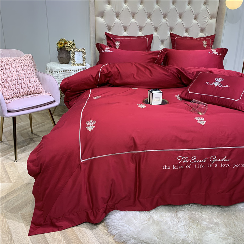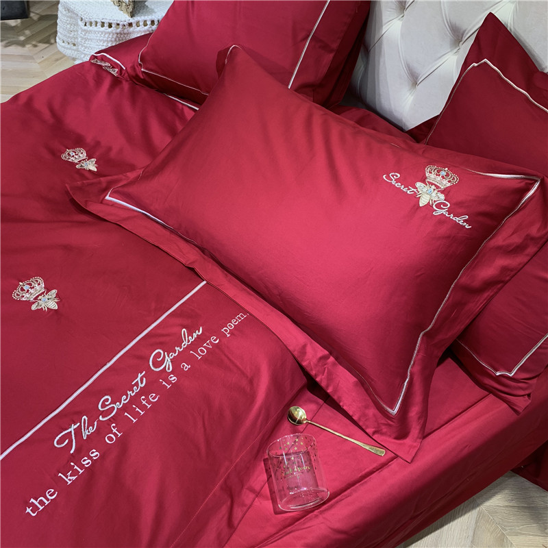 当前位置: 91家纺网 > 商品网购 > 床品套件 > 四件套 > 长绒棉四件套 > 馨蕊家居 2021新款60长绒棉绣花四件套 漫时光-温莎红