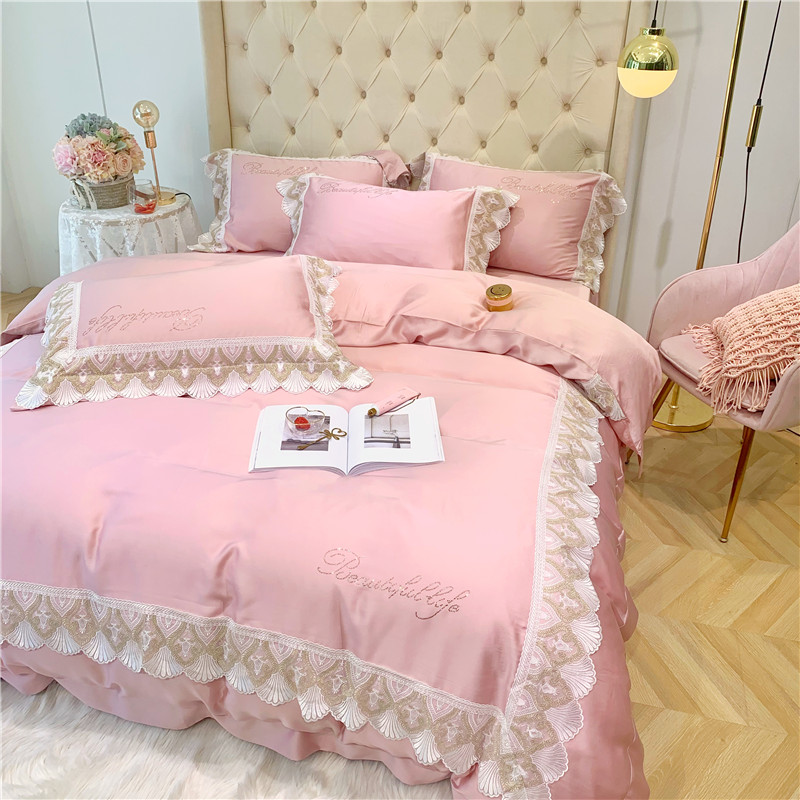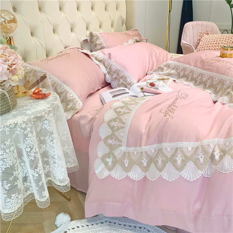 馨蕊家居 2021新款天丝绣花系列四件套 邂逅-藕粉