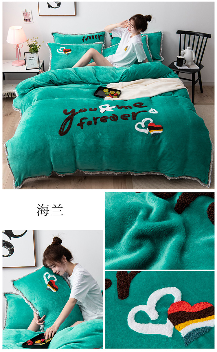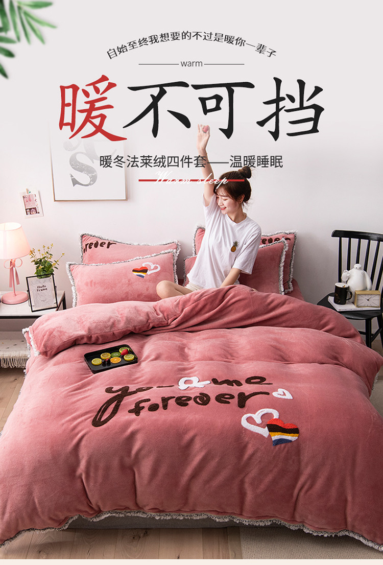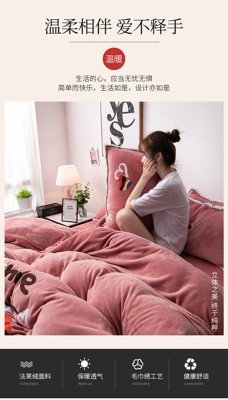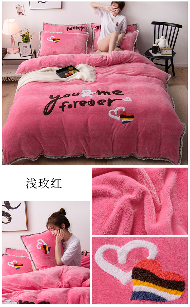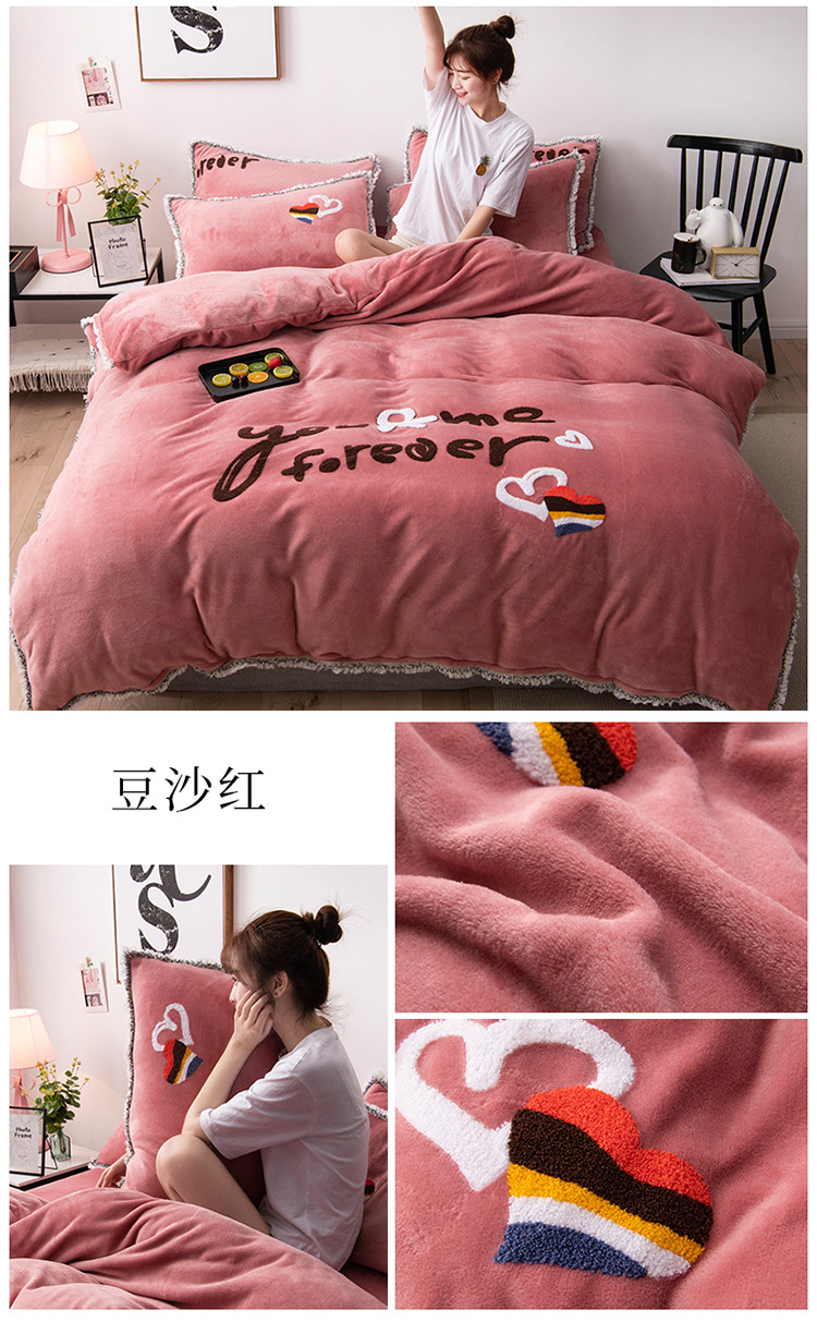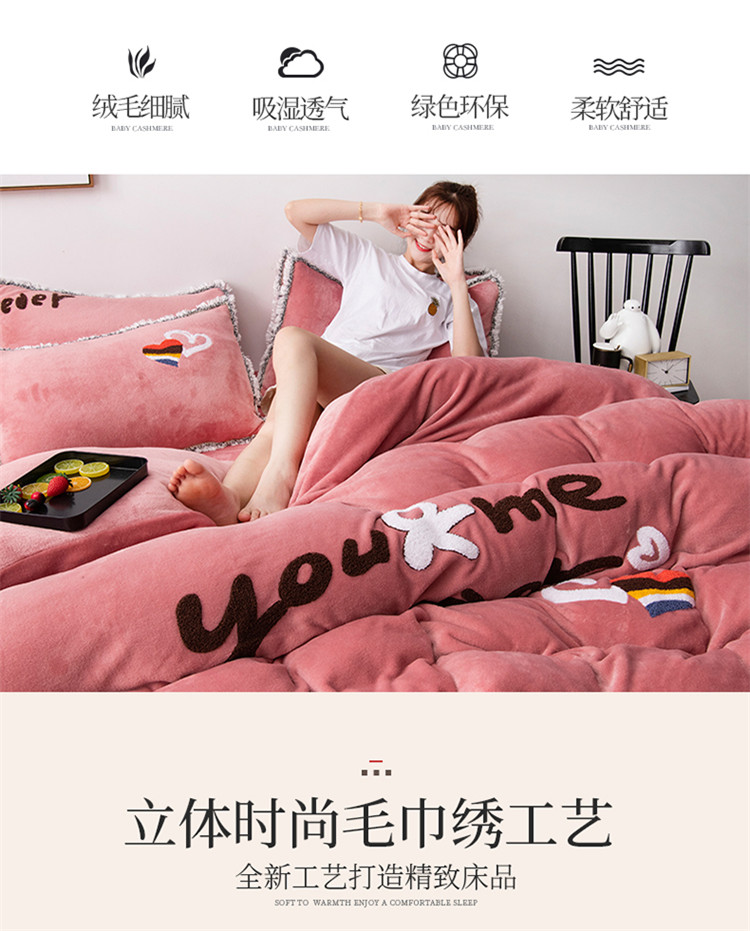 雨洋2025新款加厚保暖8.5斤牛奶绒金貂婴儿绒四件套 心心相印,心心相印