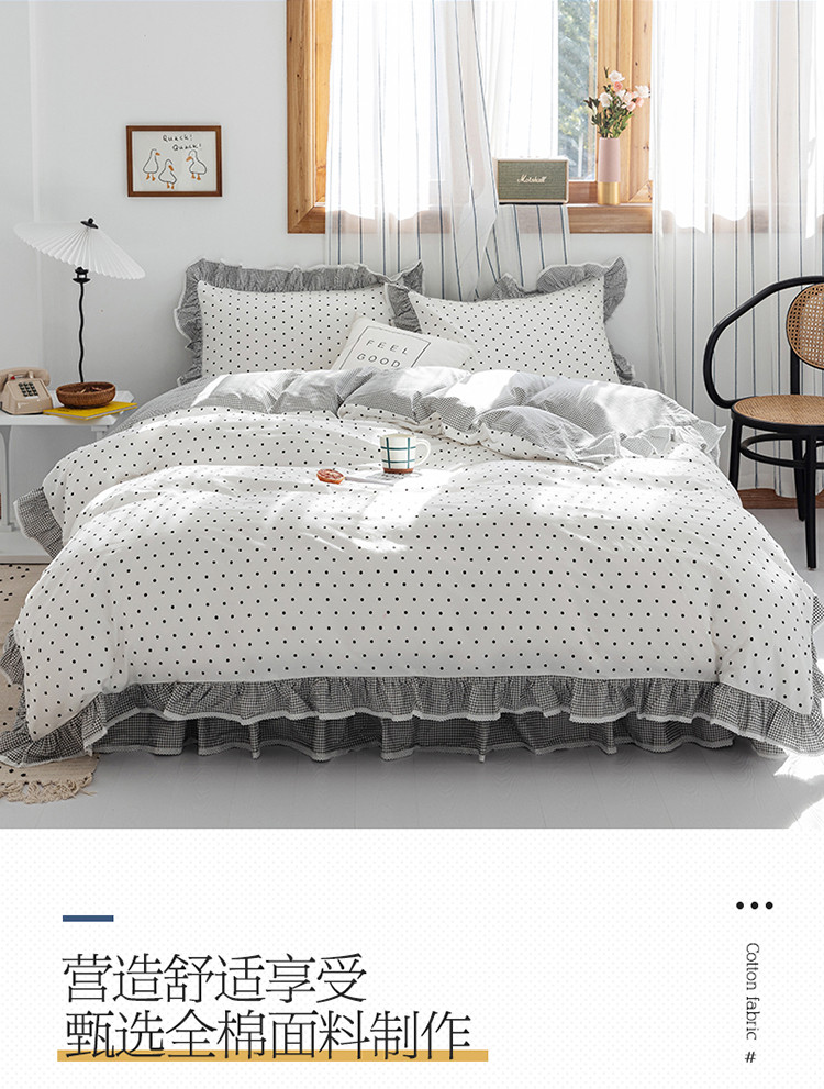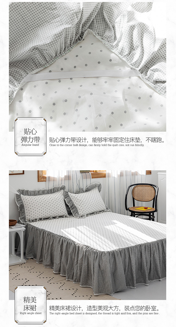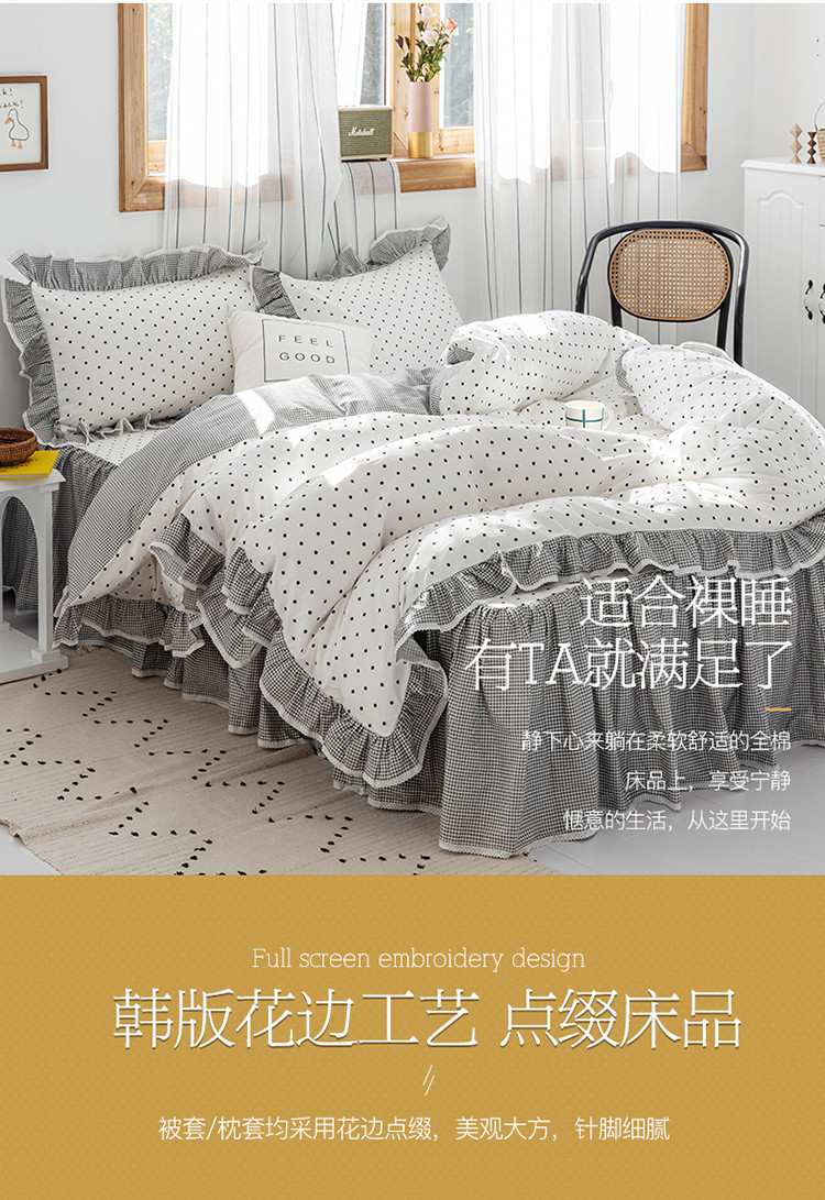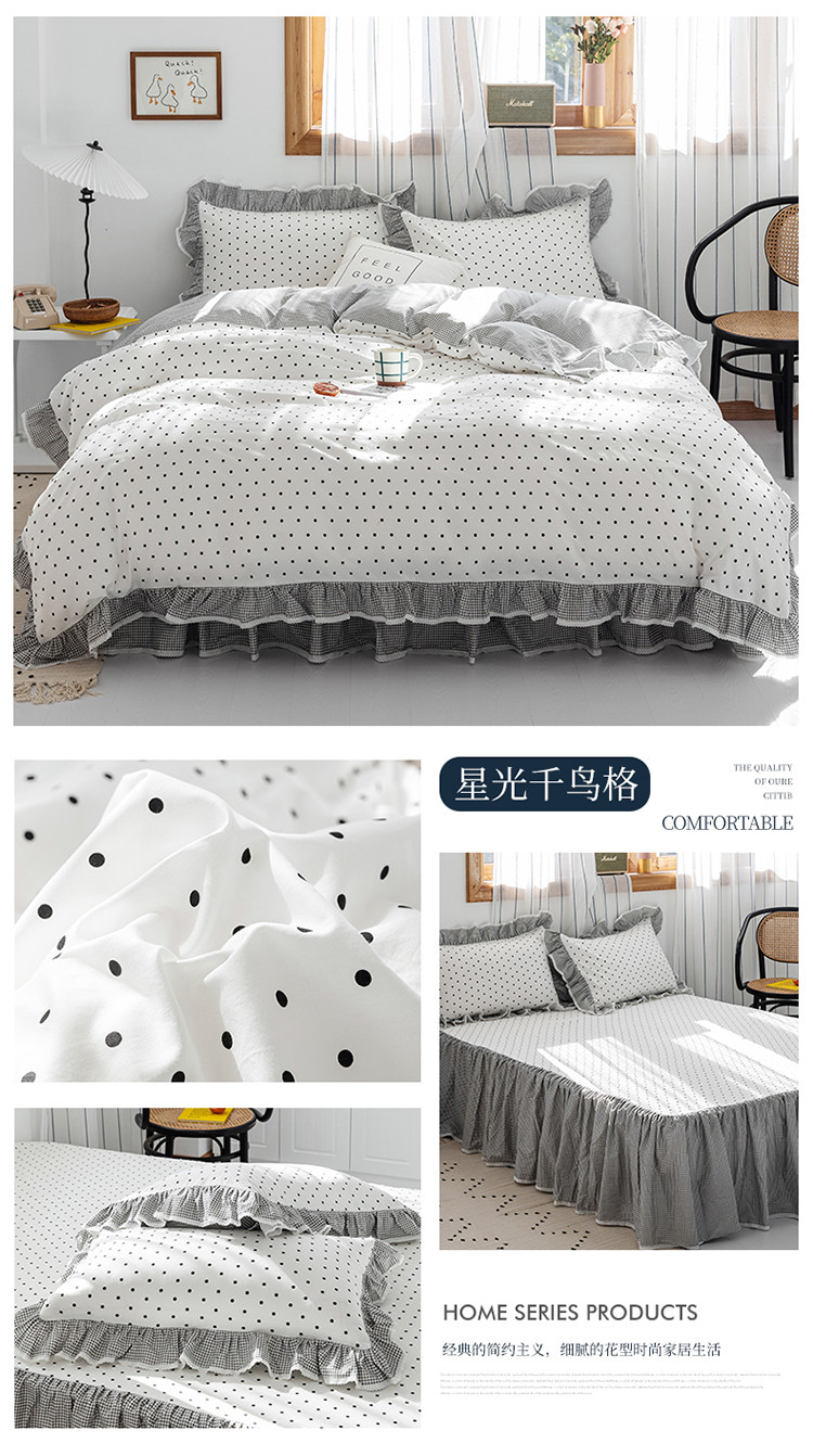 当前位置: 91家纺网 > 商品网购 > 床品套件 > 四件套 > 全棉普通四件套 > 婳庭家居 2021韩版全棉床裙四件套 星光千鸟格