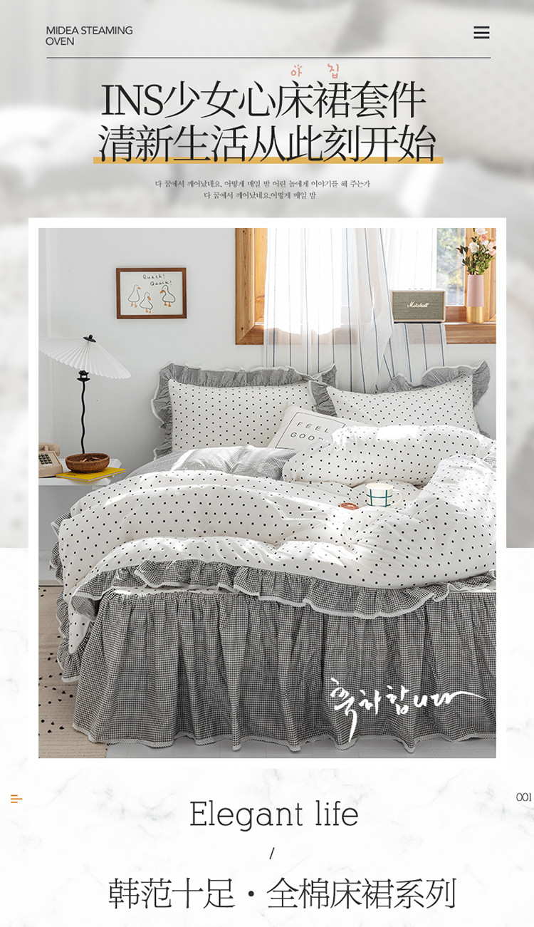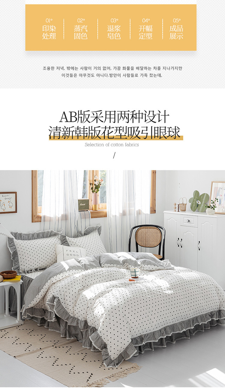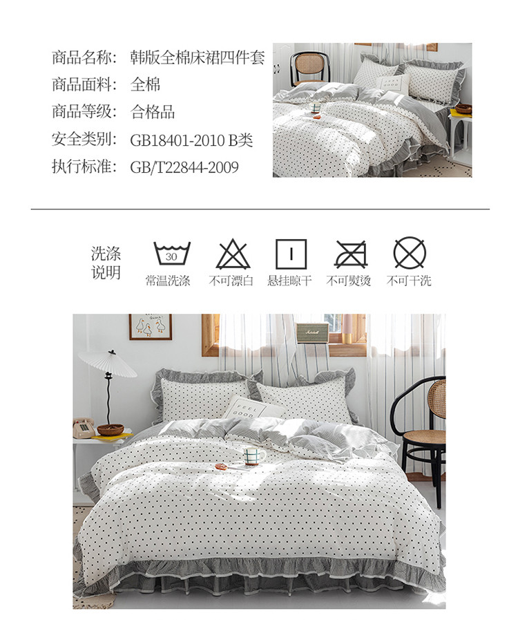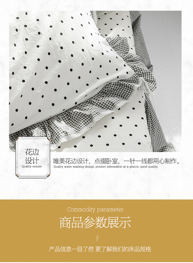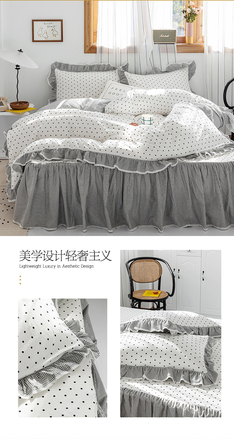 当前位置: 91家纺网 > 商品网购 > 床品套件 > 四件套 > 全棉普通四件套 > 婳庭家居 2021韩版全棉床裙四件套 星光千鸟格