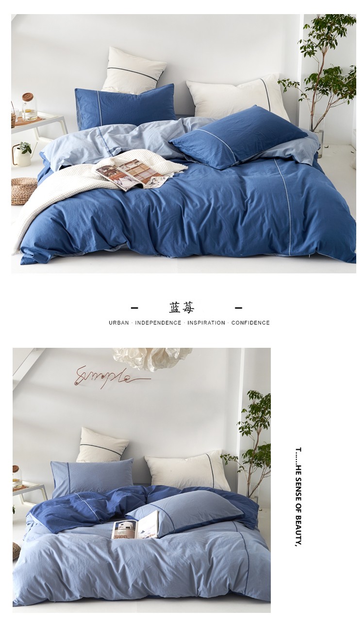 北欧风ins纯棉水洗棉床四件套全棉简约被套床单上三件套床笠,白色+藏青,藏青+浅蓝,鹅黄+螺旋藻绿,鹅黄+牛油果,螺旋藻绿+鹅黄,千夏紫+水貂灰,千夏紫+薇薇紫,薇薇紫+浅灰,浅蓝+鹅黄,浅蓝+白色,浅蓝+藏青